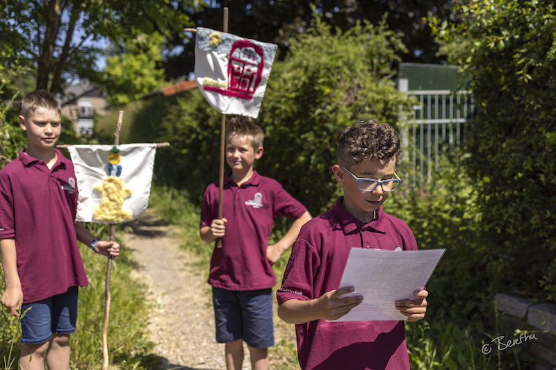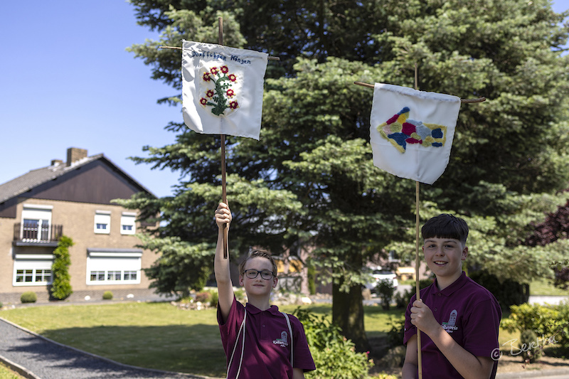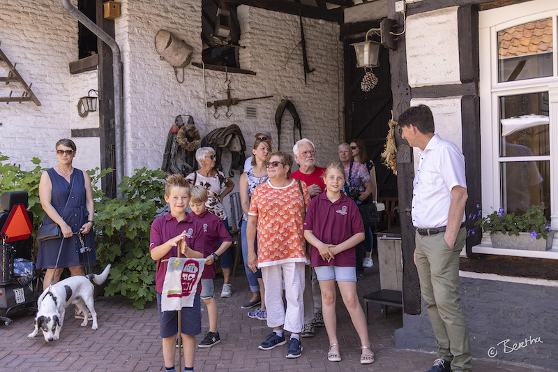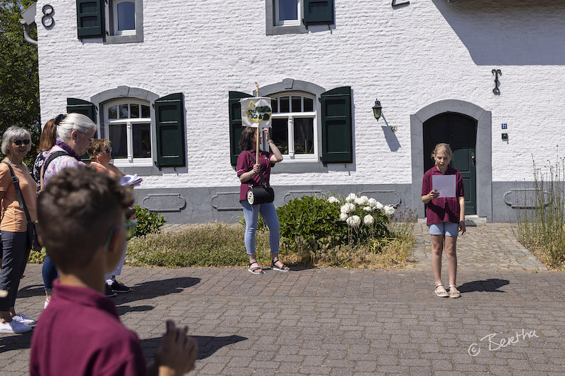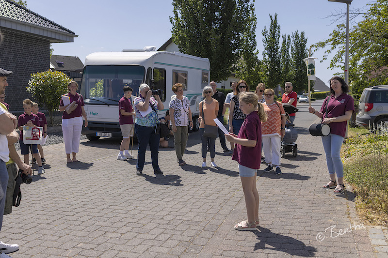 Nach 8 monatiger Vorbereitung, Recherche und Schnitzeljagden, führten die 7 Kinder, die sich für das Projekt „Dorfführer“ gemeldet haben, ihre erste Dorfführung durch Höngen durch. Mit selbstgebastelten „Wedeln“ stellten sie sich vor und gingen ihre ausgewählten Stationen an. Bei der Begrüßungsrede durch Karl Goertz, wurde neben Gottfried Engendahl, der im Archiv der Schützen eine große Bereicherung war, auch Eheleute Eiker und Eheleute Willms gedankt, da dort die Kinder einen Einblick in die ältesten Häuser von Höngen werfen ließen. Er übergab das Wort an Fritz Goertz, der den geladenen Gästen das Kulturhaus, die Alte Schule und die vorgänger Schule vorstellte. Nach einem kurzen Stück Weg, erzählte Lukas Houben einiges über des Kriegerdenkmal und Karl Goertz übernahm das Wort für die Pfarrkirche St. Lambertus. Weiter ging es zum heutigen Sportpark, dort übernahm Luca Simeunovic das Wort und erklärte sehr ausführlich über den Werdegang von Höngen und über die Ausgrabungen der Römerzeit. Besonders ist die mindestens 5 jährige Ausstellung im Kulturhaus Selfkant, mit den Funden aus der Römerzeit, die bei diesen Ausgrabungen gefunden wurden. Am ehemaligen Weiher an der Westerholzerstraße/Birderstraße übergab Luca Simeunovic das Wort an Noah Moors, der gerne über diesen Weiher erzählt hat, da er jeden Tag seinen Anblick genießen darf. Er und Paul Palmen gingen weiter zur „Heilig Kreuz“ Kapelle, wo Paul Palmen seinen ersten Text vortrug. Den zweiten Text, trug Paul Palmen am Wegekreuz an der Birderstraße vor. An dieser Stelle übergab er das Wort an Lara Ramächers. Sie war das einzige Mädchen in der Truppe. Lara stellte Haus Dilia vor. Das die Gruppe bei einer Schnitzeljagd als letzten Punkt besichtigen konnte. Nach Haus Dilia stellte Noah Moors, Haus Eiker vor. Das älteste Fachwerkhaus in Höngen. Dieses viel leider, wie so manch andere Sehenswürdigkeit, aus dem Programm, da leider nicht alles berücksichtigt werden konnte. Auf dem Weg zurück ins Kulturhaus Selfkant erzählte Luca Simeunovic in Brändschkes Gätzke etwas über die besonderen Wege in den Dörfern, die es früher gab. Am Kulturhaus Selfkant bedankte sich Lara Ramächers bei den Gästen für ihre Aufmerksamkeit und lud zum Abschluss auf Kaffee und Kuchen ein und zu einer Besichtigung nach der Stärkung im Kulturhaus selber durch Fritz Goertz. Es war ein toller und interessanter Nachmittag.