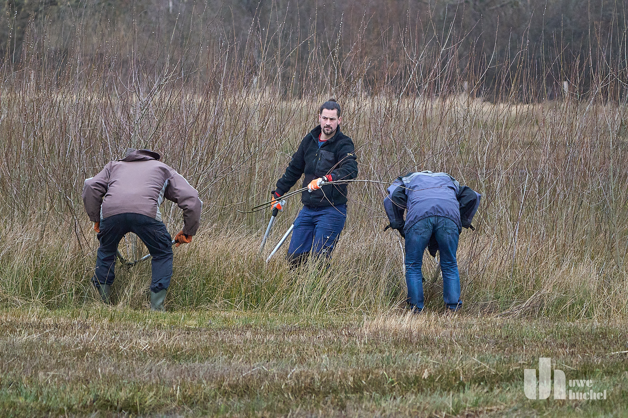 Jos Vantilt, Vorstandsmitglied IVN, und Harry van de Laar,. Wethouder van Beekdaelen, begrüßten die Teilnehmer. Enzo Mater, Förster von Natuurmonumenten, und Frank Donkers vom Nabu Selfkant e.V. zeichneten sich für den Arbeitseinsatz verantwortlich.