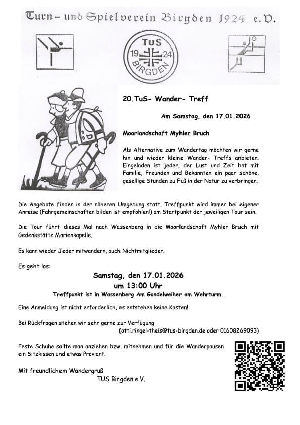 20.TuS- Wander- Treff Uwe Huchel | vor 3 Monaten | 1 Min. Lesezeit 20.TuS- Wander- Treff U Uwe Huchel | vor 3 Monaten | 1 Min. Lesezeit Als Alternative zum Wandertag möchten wir gerne hin und wieder kleine Wander- Treffs anbieten. Eingeladen ist jeder, der Lust und Zeit hat mit Familie, Freunden und Bekannten ein paar schöne, gesellige Stunden zu Fuß in der Natur zu verbringen. Teilen: