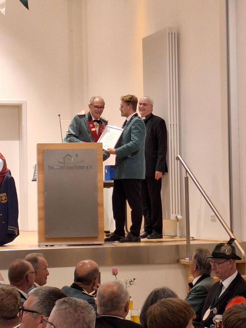 Ein besonderer Moment war die Würdigung von Peter Huben, der in den Jahren 1973 und 1974 als zweifacher Dekanatskönig in die Geschichte Saeffelens einging. Nach über 50 Jahren stellt die Bruderschaft in Saeffelen nun wieder einen Dekanatskönig – ein Ereignis, das mit Stolz und Freude gefeiert wurde.