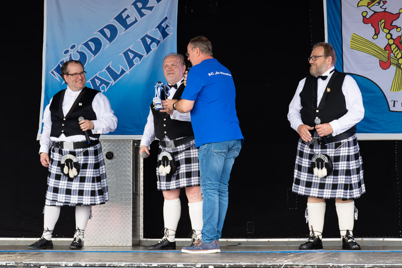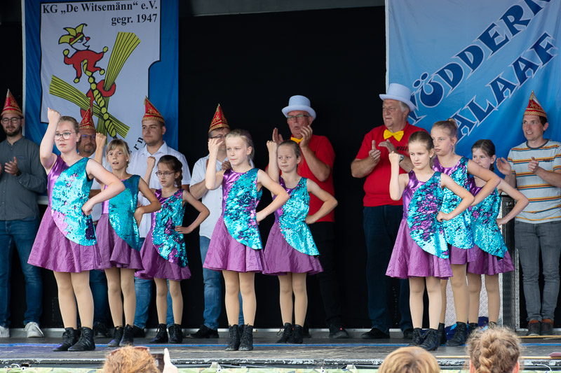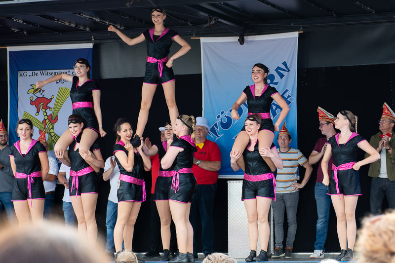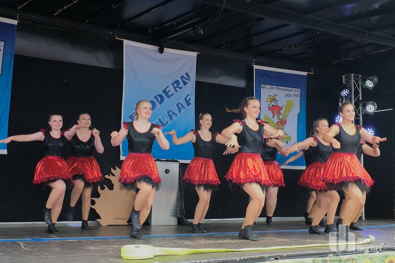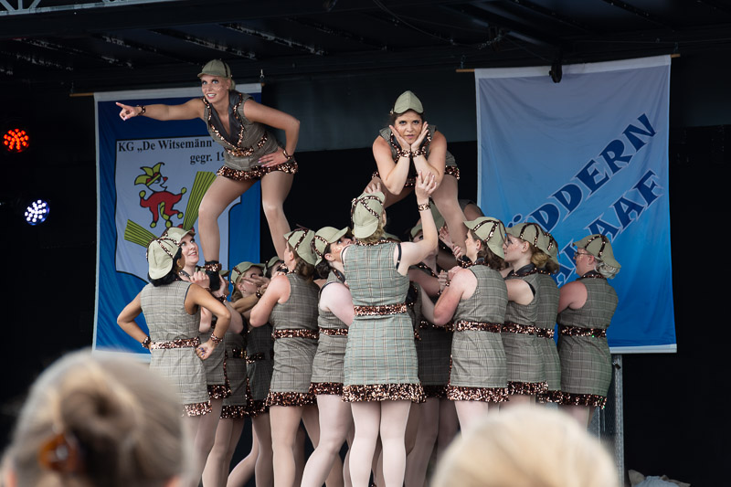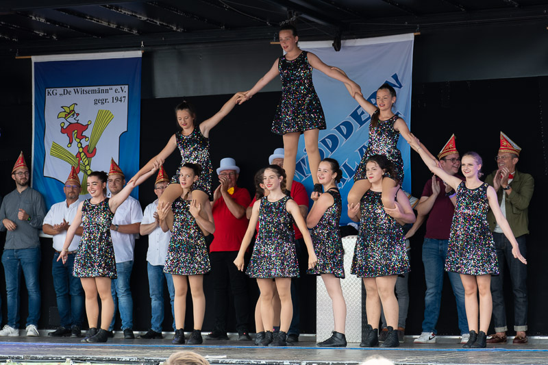 Die pessimistischen Jecken saßen in der Westzipfelhalle, die Optimisten hatten sich draußen bereits die besten Plätze gesichert und als es klar war, dass kein Regen mehr kommt, liefen die Witsemänn zu Bestform auf. Schnell alles trocken gewischt. Und dann ging es Schlag auf Schlag.