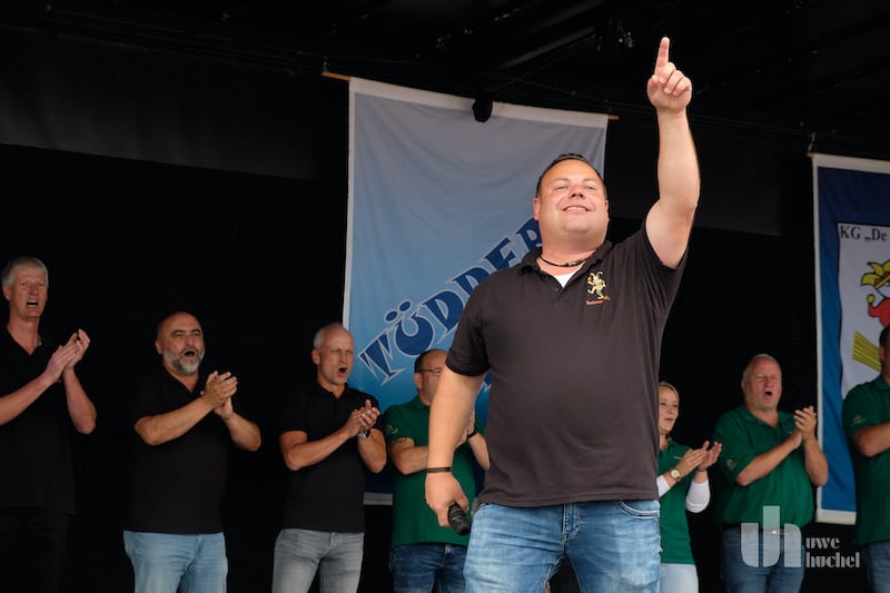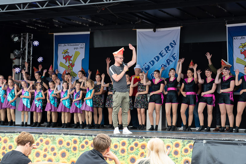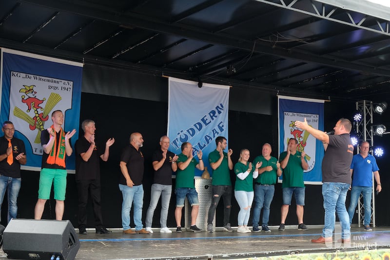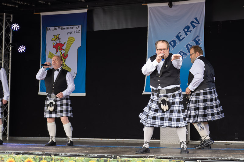 Zu einem Sommerfrühschoppen hatten heute die Tüdderner Witsemänn einladen um so ihrem 75-jährigen Bestehen einen würdigen Rahmen zu geben. Der Tag sollte, wie für einen Tüdderner Frühschoppen üblich, pünktlich um 11:11 Uhr starten. Doch dem machte der Regen einen Strich durch die Rechnung. Die Bühne blieb zunächst leer.