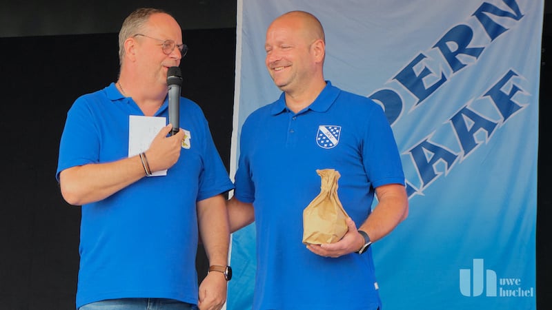 Wie bei einem Frühschoppen der Witsemänn üblich, wurden befreundete Karnevalsvereine begrüßt. Die Schafhausener Einmannabordnung überbrachte Grüße und eine Tüte voller Orden.