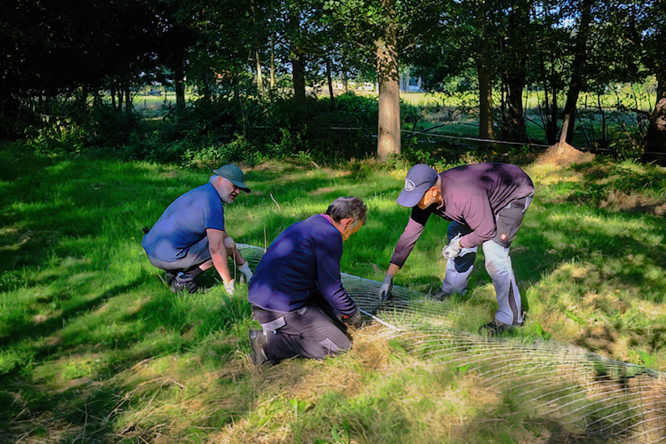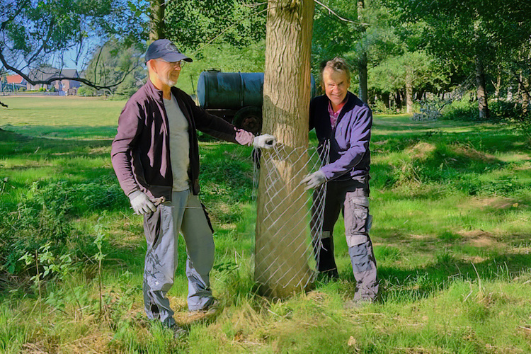 Damit der Biber im Selfkant nicht da Bäume umlegt, wo er nicht soll, wurden am 11. August Bäume mit Drahtgeflecht geschützt. Dabei konnten die Mitglieder vom Nabu Selfkant sowie die anderen teilnehmenden Naturfreunde auf eine breite Unterstützung der Nutzer und Eigentümer der Wiese zählen. Die Firma Krewel aus Wehr hat den Maschendraht kostenlos bereitgestellt.
