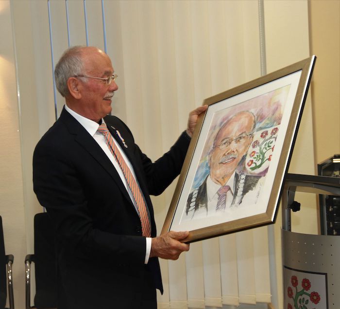 Die jetzige Pandemielage ließ endlich eine würdige Verabschiedung des Altbürgermeisters Herbert Corsten vor. Nach der Ratssitzung am Dienstag dankte Bürgermeister Norbert Reyans seinem Vorgänger für eine prägende Amtszeit: "Deine 16jähirge Amtszeit hat Spuren im Selflant hinterlassen" so Norbert Reyans zu Beginn seiner Laduatio. Reyans überreichte ein Bildgeschenk der Verwaltung der 16jähirgen Amtszeit, Vertreter des Rates überreichten ein Ölgemälde als Wertschätzung. Gattin Marie Jo erhielt als Dank einen bunten Blumenstrauß.