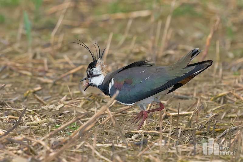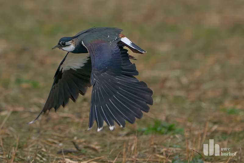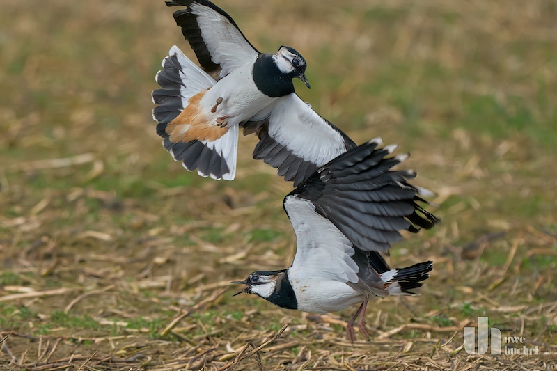 Seit Februar können wir sie wieder sehen, die Akrobaten der Lüfte mit ihrem kontrastreichen Gefieder. Eine metallisch glänzender schwarzer Oberseite und eine weiße Unterseite hat nur er. Ebenso kennzeichnend sind das schwarze Brustband sowie die abstehende „Federholle“ am Hinterkopf. Während seiner Flüge ruft er laut seinen Namen „Ki-witt“ - der Kiebitz.