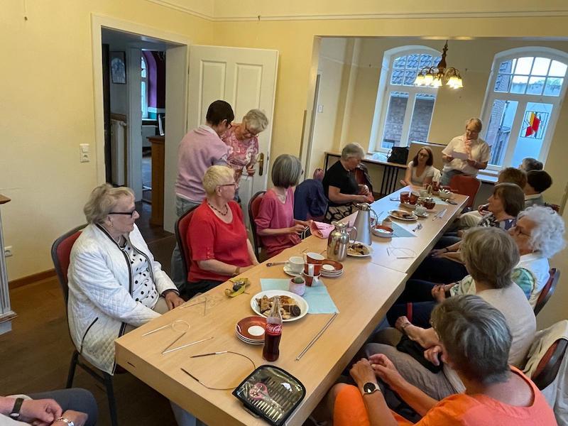 21 Damen des Pfarrcäcilienchors und des Kulturvereins stricken 50 warme Schals für die Chorauftritte in den Herbst und Wintermonaten.