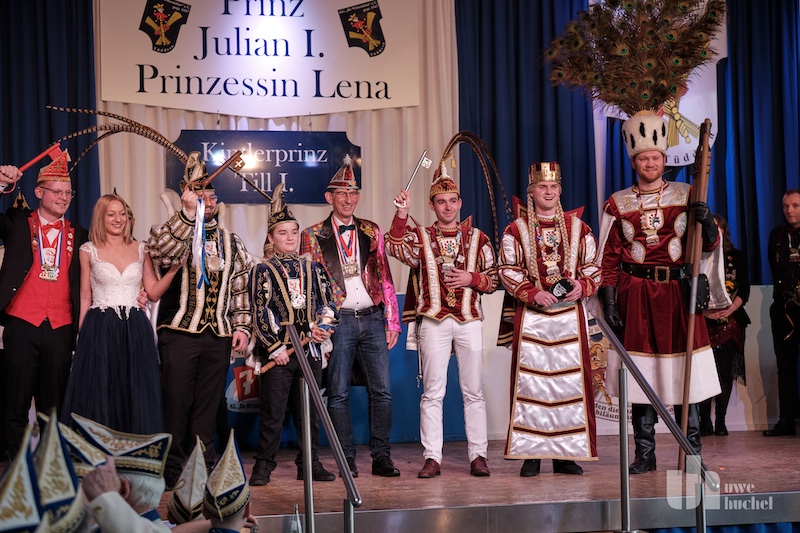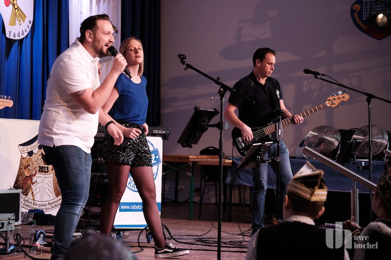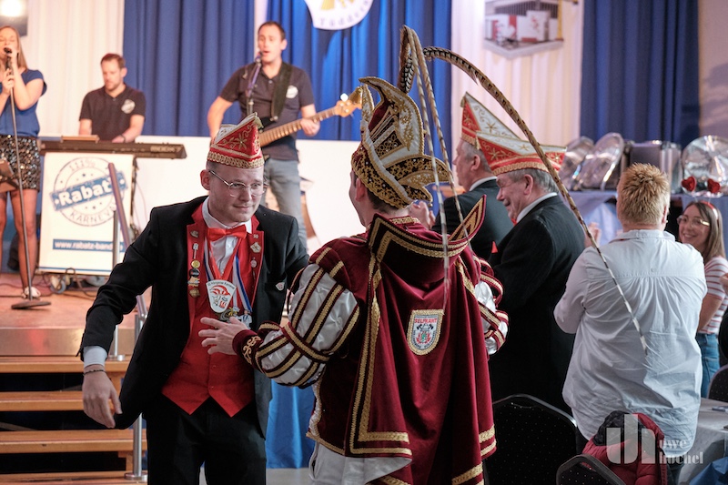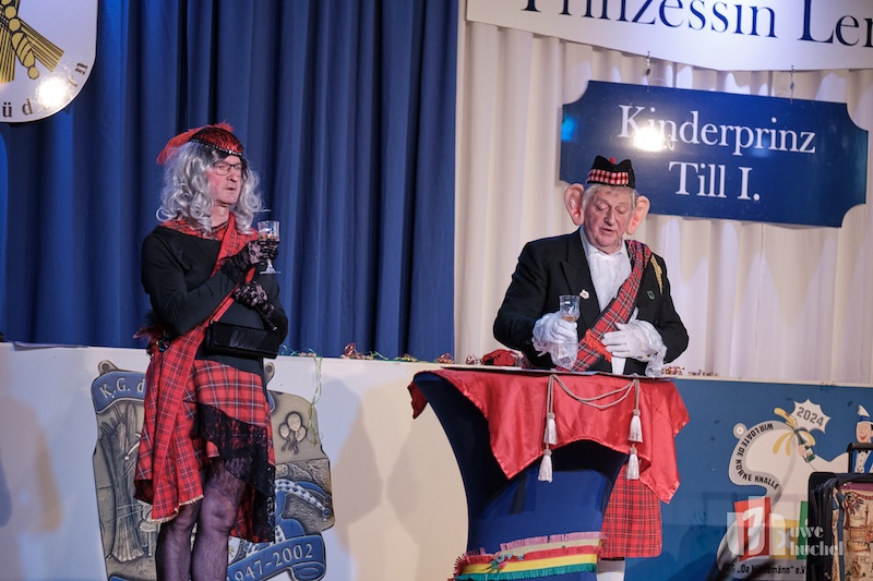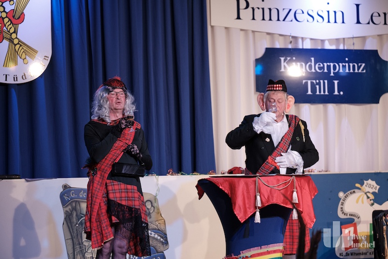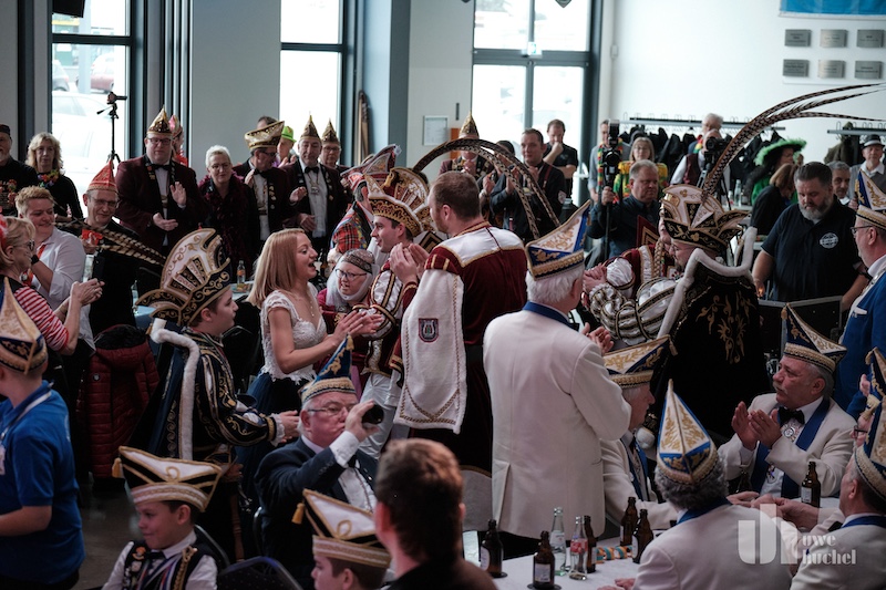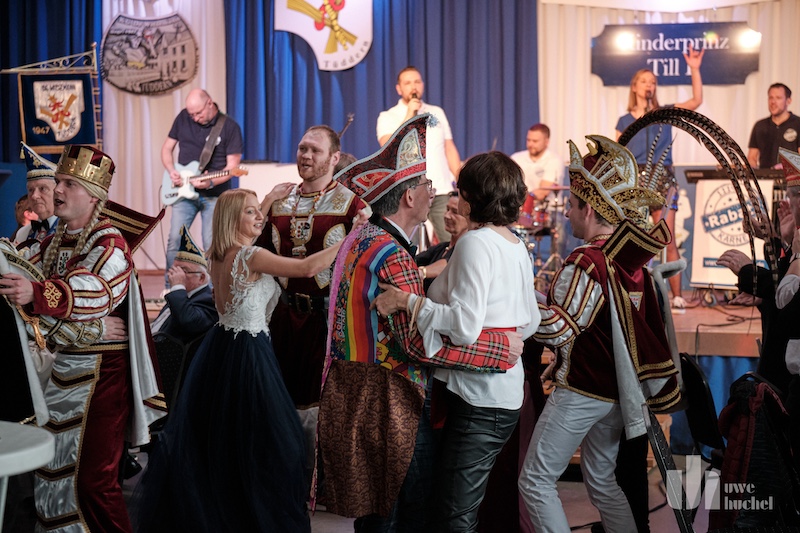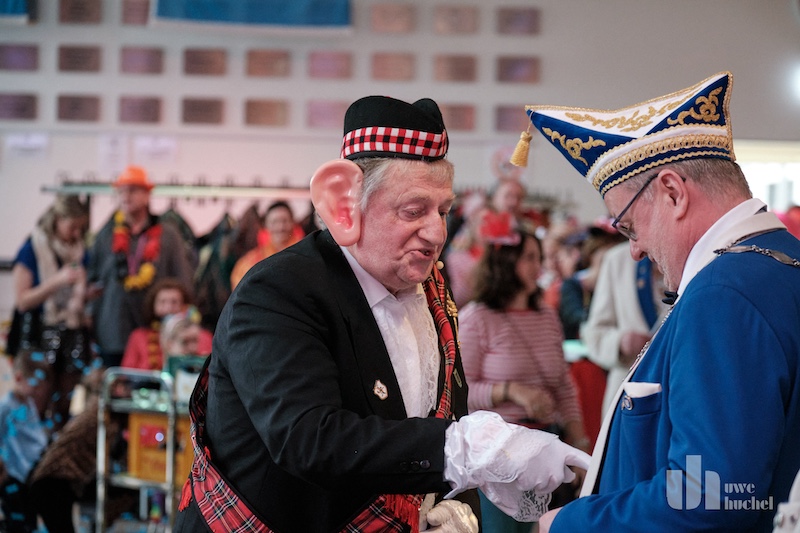 Die Kleischötte präsentierten Rabatz. Und sie heizten in der Westzipfelhhalle so richtig ein. Es wurde mitgesungen, geschunkelt und getanzt. Der nächste Höhepunkt war der Besuch des britischen Königspaares mit ihrem Butler James. Diese wurden durch das Driegeschaar Arno Conen, Willi Houben und Harald Zaunbrecher verkörpert. Der britische Protokollchef hatte die Majestäten jedoch falsch informiert. Sie glaubten permanent in Höngen zu sein. Na ja, kann passieren bei den ganzen Terminen.