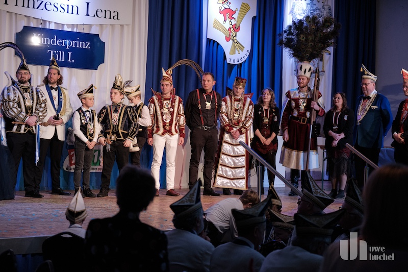 Ein schöner Nachmittag fand mit dem großen Finale mit Driegeschaar, dem Tüdderner Prinzenpaar nebst Kinderprinzen, dem Süsterseeler Dreigestirn, Bürgermeister Norbert Reyans und den drei Sitzungspräsidenten ein Ende.