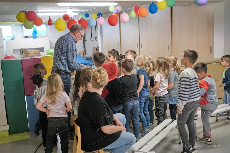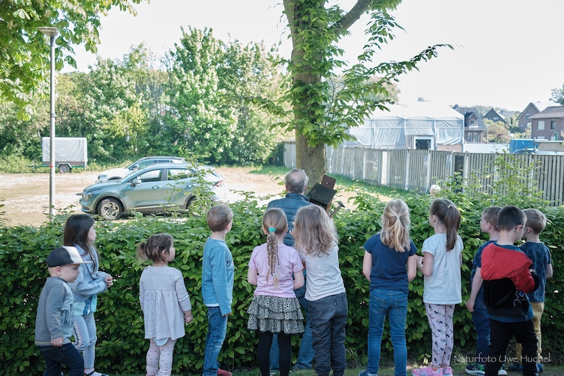 Der Kindergarten in Schalbruch kümmert sich um eine kindgerechte Betreuung voller Kreativität. Auf das Alter angepasste Beschäftigungen bieten Spaß mit spielerischem Lerneffekt. Und so ist man oft in der Natur. Am 28.4.2025 veranstalteten Vertreter des Nabu Selfkant e.V. einen Lichtbildervortrag. Uwe Huchel zeigte Bilder von Rehen, Hasen und vielen Vögeln die mehr oder weniger alle in und um Schalbruch aufgenommen wurden. Hermann - Josef Schmitz hatte wieder etliches an Anschauungsmaterial im Gepäck. Am Ende des Vormittages wurde ein Meisenkasten vom Nabu Selfkant e.V. spendiert und angebracht. Dankbare Kinderaugen waren der schöne Lohn für diese Veranstaltung