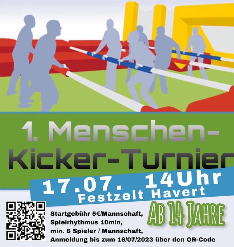 Am Montag, dem 17. Juli treffen sich die Schützen mit dem Spielmannszug um 10.00 Uhr zum Hochamt und zur Kranzniederlegung. Nach dem Umzug durch Millen-Bruch ist das Zelt zum Frühshoppen geöffnet. Eine absolute Neuheit ist das erste Haverter Menschen-Kicker-Turnier um 14 Uhr! Die Besucher erwartet bei Kaffee und Kuchen ein spannendes Freizeitturnier mit anschließender Siegerehrung. Für die Kinder wird es ebenfalls einen spielerischen Wettbewerb geben.