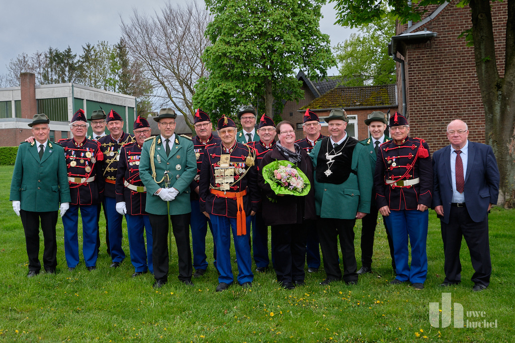 Mit ihrer Bataillonskanone wollten sie das heutige Treffen mit den Tüddernern eröffnen. Da es dafür aber keine Genehmigung auf deutscher Seite gab, zog man kurzerhand nach Broeksittard und begann dort den Königsvogelschuss 2023.