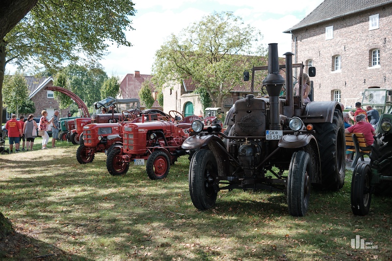 Zahlreiche Traktoren vom Millener Oldtimer Verein ergänzten die eindrucksvollen Vorführungen an den alten Maschinen. Der Verein mit seinen 134 Mitglieder aus Deutschland, den Niederlanden und Belgien bot insgesamt ein schönes Programm für jede Altersgruppe.