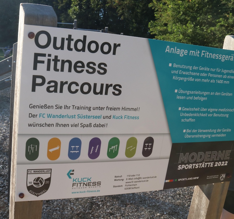 Roland Robertz blickte zum erstellten Qutdoor-Gelände mit erstellten Trainingsprogramm für Fortgeschrittene und Anfänger durch die Sporthochschule Köln, ferner zum Kunstrasen-Kleinspielfeld. Weiterhin ist der dritte Teilabschnitt neben den Fitnesstationen/Kunstrasenspielfeld mit Familiensitz- und Spielecke ebenfalls ein weiteres Schmuckstück im Heidestadion. Roland Robert schaute weiterhin zum neuen Ballfangzaun mit Abgrenzung der Sport- und Spielstätte, welcher dank finanzieller Unterstützung von Werbepartnern in Eigenleistung durch den FC Wanderlust errichtet wurde.