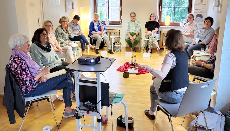 An einem Freitag im Mai ließen sich elf ehrenamtliche Hospizbegleiter von Camino, im Katholischen Forum für Erwachsenenbildung in Gillrath, durch Beatrix Hillermann und Lucia Traut in der Durchführung der Segensfeier schulen. Die Dozentinnen vermittelten u.a. theologische, psychologische und soziologische Grundlangen zur Segensfeier und religionssensiblen Umgang mit den individuellen Bedürfnissen und Erwartungen der Sterbenden und deren Angehörigen. Im Rollenspiel konnten die Teilnehmenden sich ausprobieren, ihre Kompetenzen stärken und ihre Emotionen und ihr Handeln reflektieren.