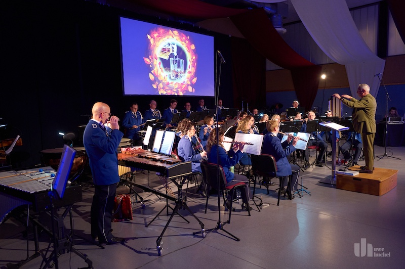 Vor dem letzten Stück gab es Blumen für den Dirigenten, dessen Programm eine echte Herausforderung für die Musiker war, für Sarah Horrichs aus Langbroich (eine fantastische Aushilfe an der ersten Klarinette) Uschi Lersch (für das kurzfristige Nähen der Tücher) und last but not least an den Radiomoderator Josch Hamerlers für seine tollen Ideen.