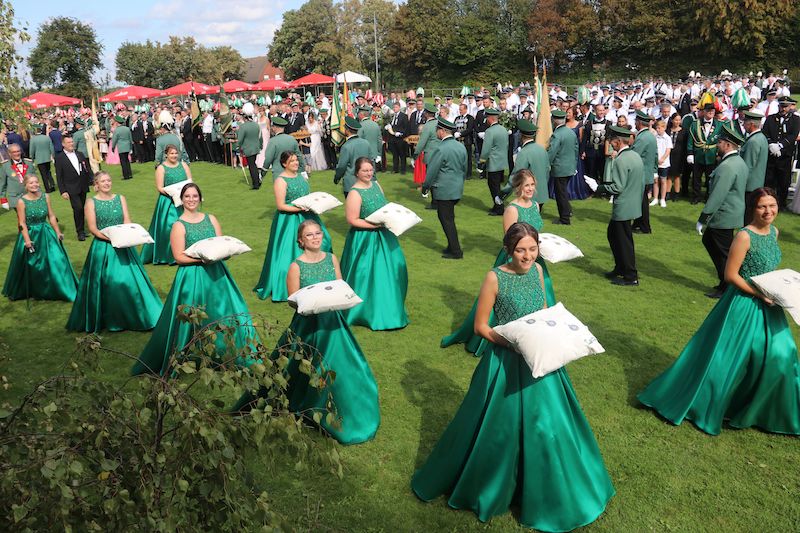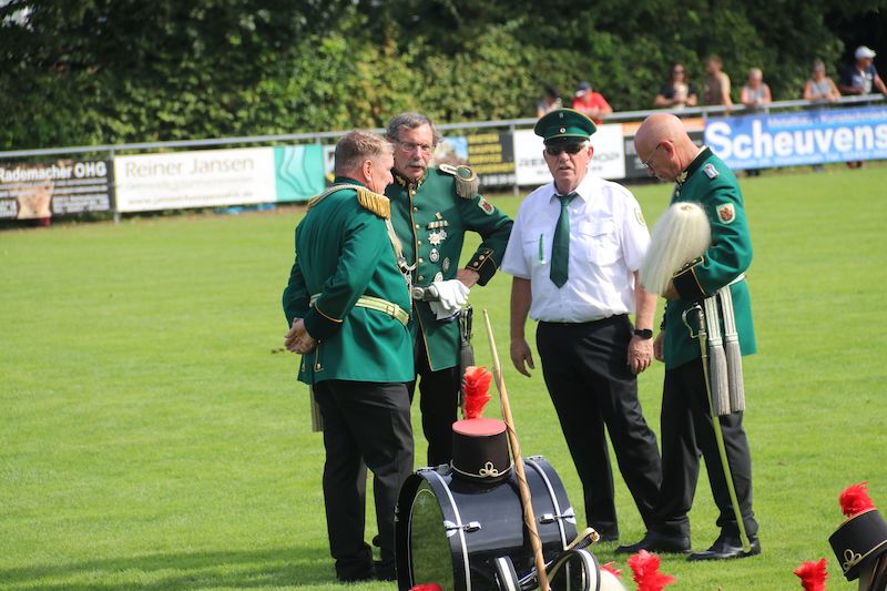 21 Bruderschaften aus dem Dekanatsverband Gangelt-Selfkant, drei vom Heinsberger Bezirk sowie Gillrath vom Bezirk Geilenkirchen. Die St. Nikolai Schützenbruderschaft 1426 Straeten präsentierte sich als ausgezeichneter Gastgeber. 17 Spielmannszüge, sieben Musikvereine - da lag Musik in der Luft. Und dazu tausende Besucher. Der Heimatabend am Freitag sah mit der Auszeichnung des Schulterbandes an General Hermann Hamacher und Rudi Scherrers sowie den Großen Zapfenstreich ihre Highlights, der Heimatabend war erneut ein besonderes Festtag.