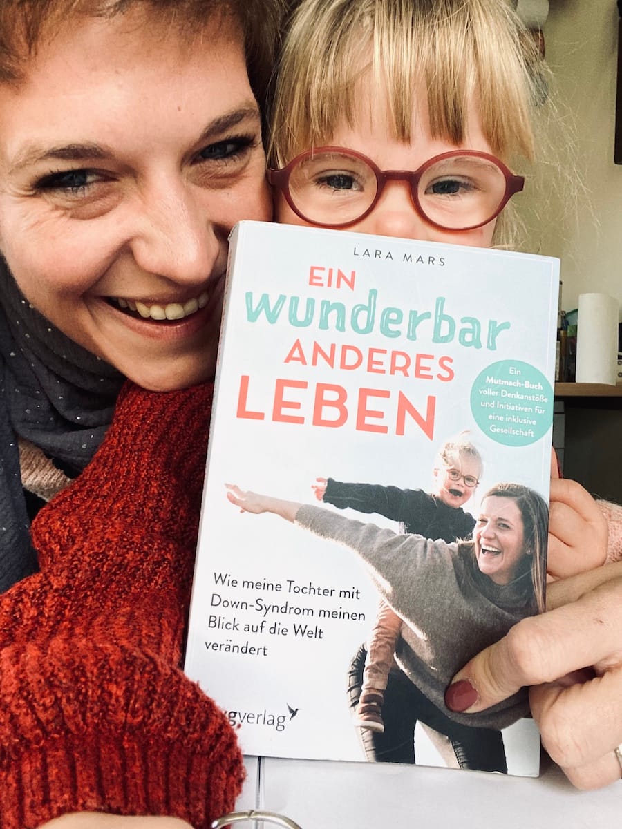 Tochter mit Trisomie 21 mit ihrem Buch“ Ein wunderbar anderes Leben“ Eltern