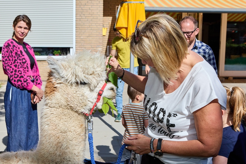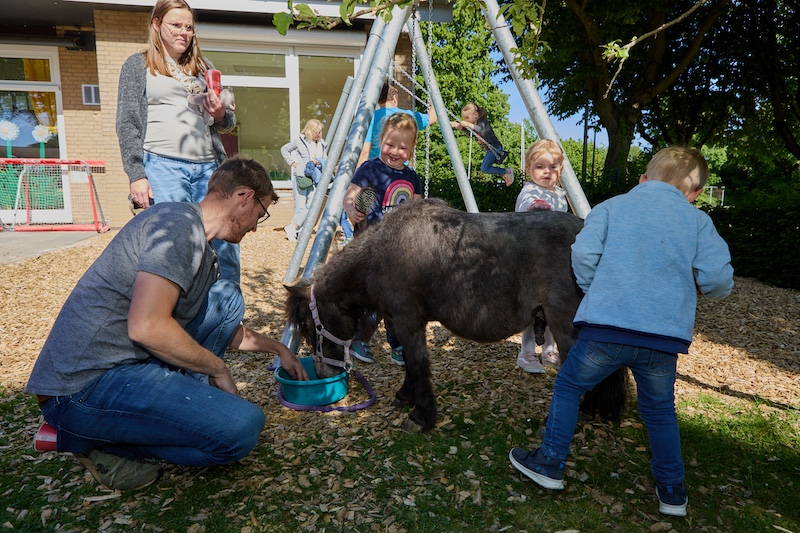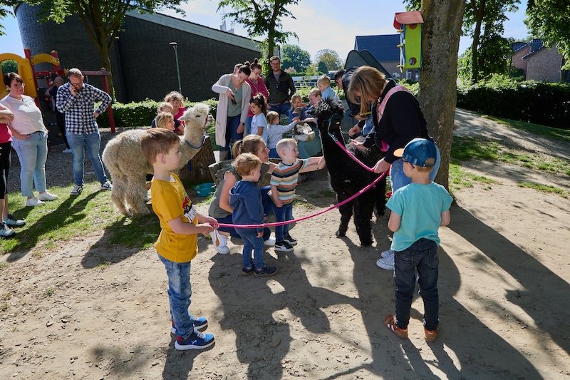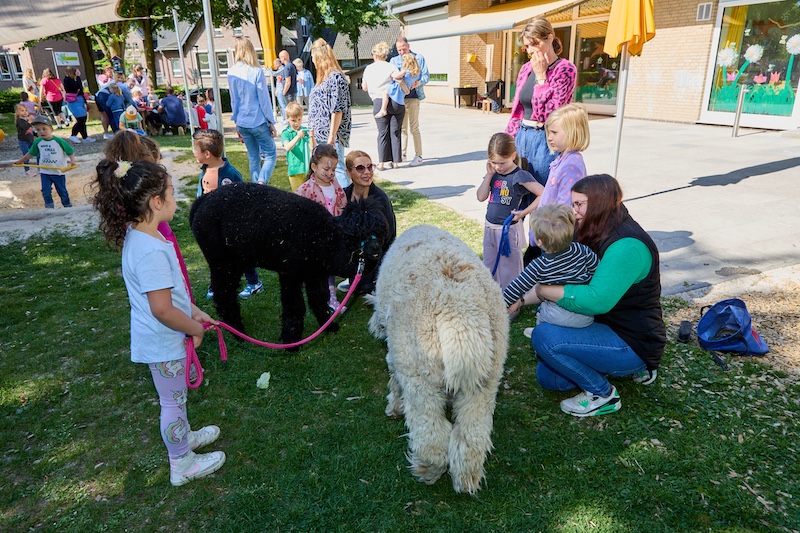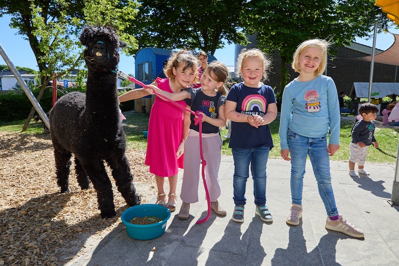 Am vergangenen Samstag feierte der Förderverein der Kita Sonnenstrahl Selfkant-Schalbruch sein 10-jähriges Jubiläum. Der Vorstand des Fördervereins hatte zu einer ganz besonderen Attraktion in den Kindergarten eingeladen: Bei strahlendem Sonnenschein hatten sich viele Kindergartenkinder mit ihren Eltern im Außengelände des Kindergartens versammelt. Um 10 Uhr fuhr ein Wagen mit einem Viehanhänger der Einrichtung „PANUBA“ vor. Panuba ist ein Erlebnisbauernhof in Wegberg, der tiergestützte Aktivitäten und Therapien für Kinder anbietet. Voller Spannung wurde von den Kindern beobachtetet, was da nun wohl auf sie zukommen mochte: Die Überraschung war groß als zwei Alpakas, ein Pony, fünf Kaninchen, eine Gans und ein Hund im Außengelände der Kita umherliefen bzw. hineingeführt wurden. Manches Kind näherte sich sehr vorsichtig und zaghaft, andere hingegen zeigten keinerlei Berührungsängste. Eines jedoch war bei allen gleich: Die Freude in den Augen aller Beteiligten und die friedliche, fröhliche und ruhige Kontaktaufnahme mit den Tieren.