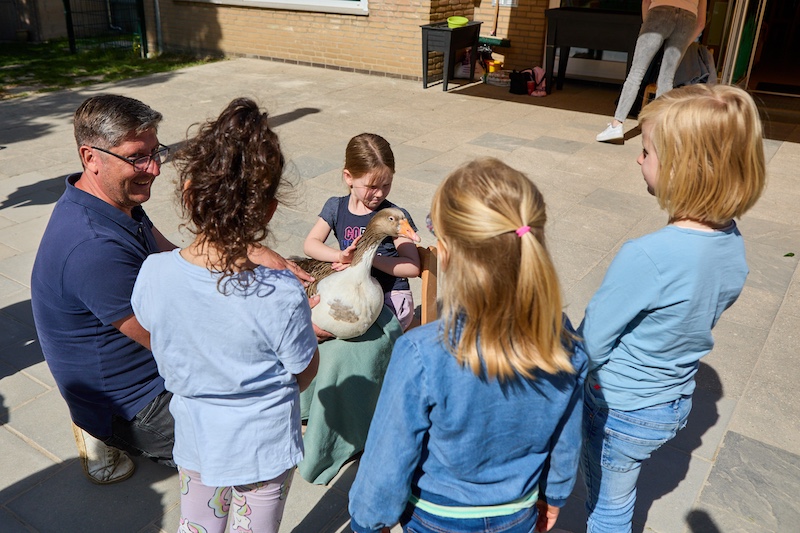 Das Pony wurde von den Kindern gestriegelt, mit den Alpakas wurde gekuschelt und umherspaziert, die Kaninchen und der Hund wurden gestreichelt und auf den Arm genommen und selbst die Gans konnte sich nicht über mangelnden Zuspruch beschweren. Nebenher erklärte Herr Kryk von „Panuba“ einige Details zu den Tieren.