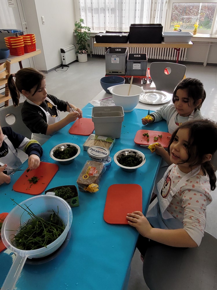 So durften die Kinder die frischen Lebensmittel vor der „Kochphase“ selbst einkaufen. Hierfür wurde ein Kaufladen bereitgestellt. Am Ende der Aktion nahmen die teilnehmenden Kinder eine gemeinsame Mahlzeit ein. Es erfüllte sie mit Stolz, dass nun alle die an den verschiedenen Tischen zubereiteten Speisen, wie etwa die Gemüsespieße oder das eigens angerührte indische Joghurtgetränk Mango Lassi, gemeinsam probieren konnten. Es war eine rundum gelungene Aktion!
