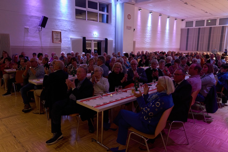 Während der Pause stand ein weiteres Highlight auf dem Programm. Völlig überrascht waren Ilse Kreutzer, Anni Lowis und Heinz Hilgers (es fehlte wegen Krankheit Dieter Wauben) als sie von Franz Lipperts auf die Bühne gebeten wurden. - siehe Titelbild