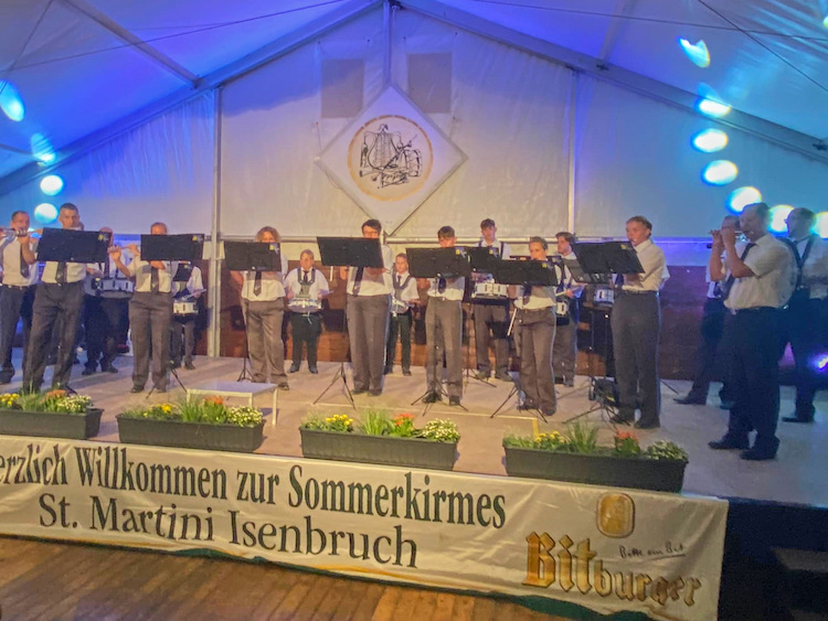 Am Freitag Abend ging es endlich wieder los. Die Spielleute haben sich in Isenbruch zum gemeinsamen Musizieren getroffen. Es lag vom ersten Moment an eine gute Stimmung in der Luft und alle freuten sich darauf endlich wieder auftreten zu können. Die Vereine spielten in unterschiedlichen Zusammensetzungen ihre Musikstücke und zum Finale spielten alle Spielleute zwei Stücke gemeinsam, wobei beim Selfkantmarsch auch der Bürgermeister, Norbert Reyans den dazugehörigen Liedtext mitsang.