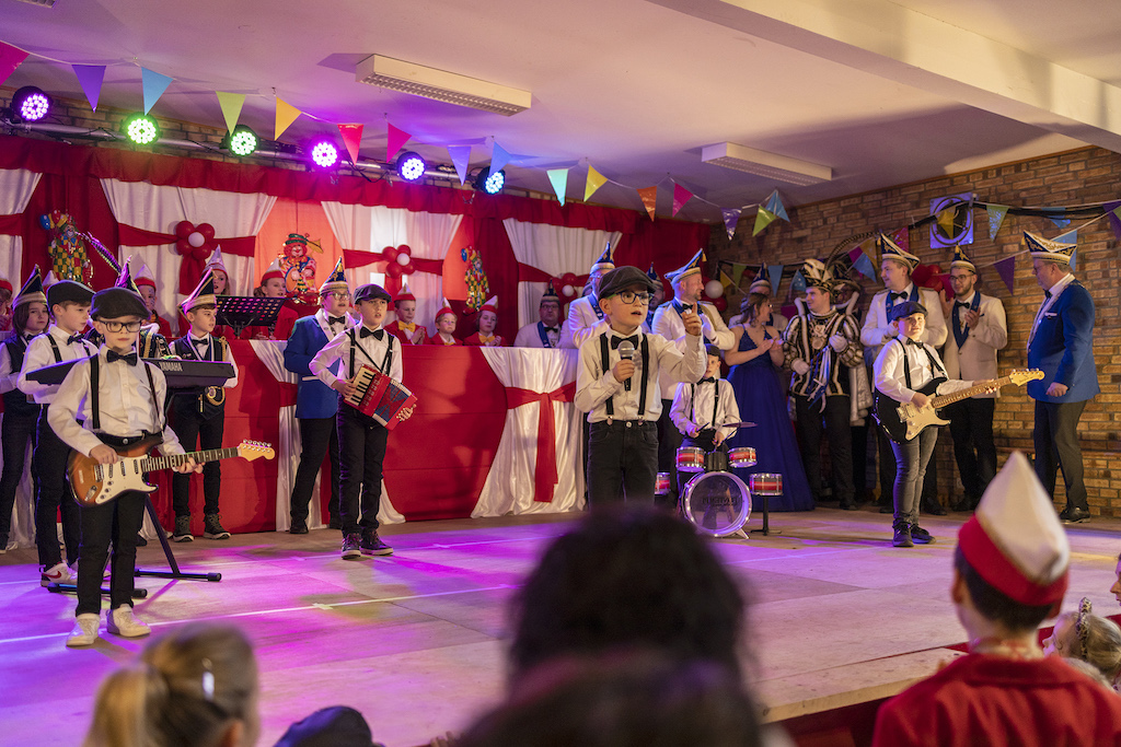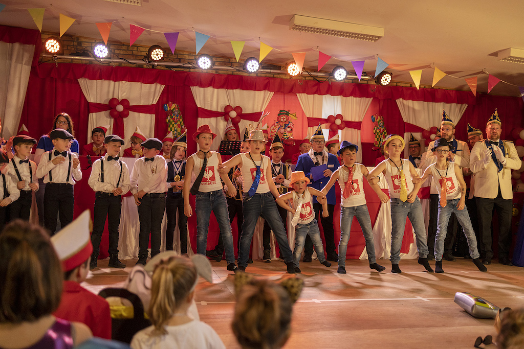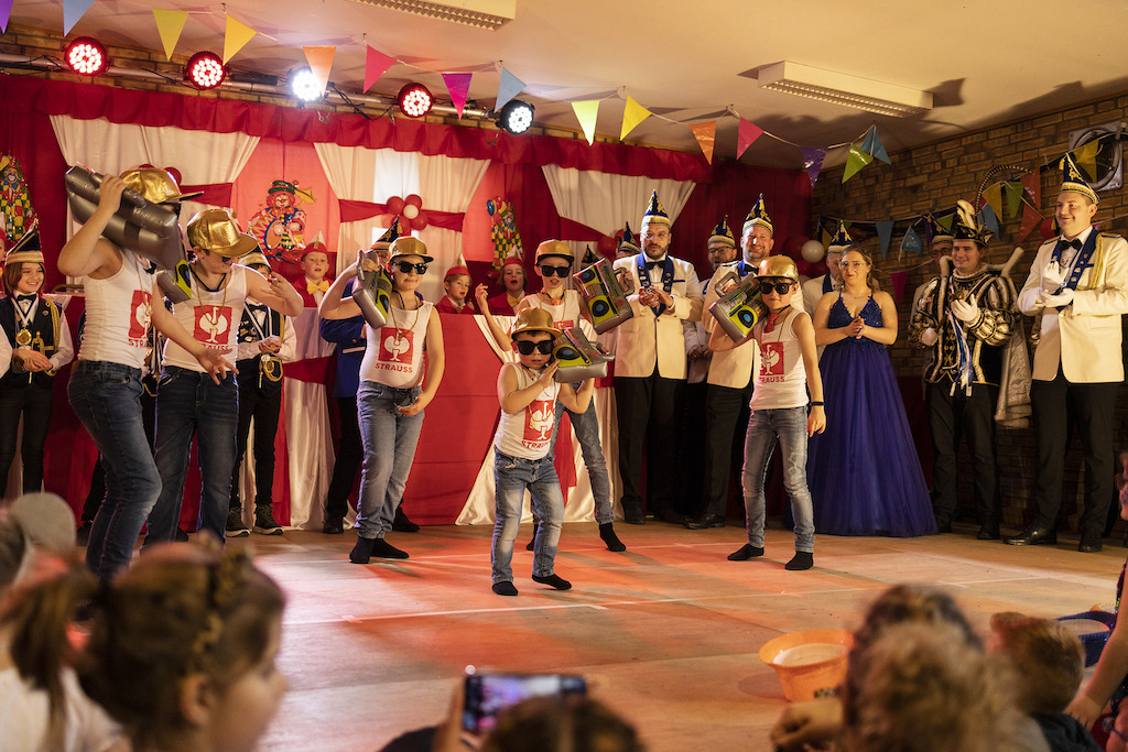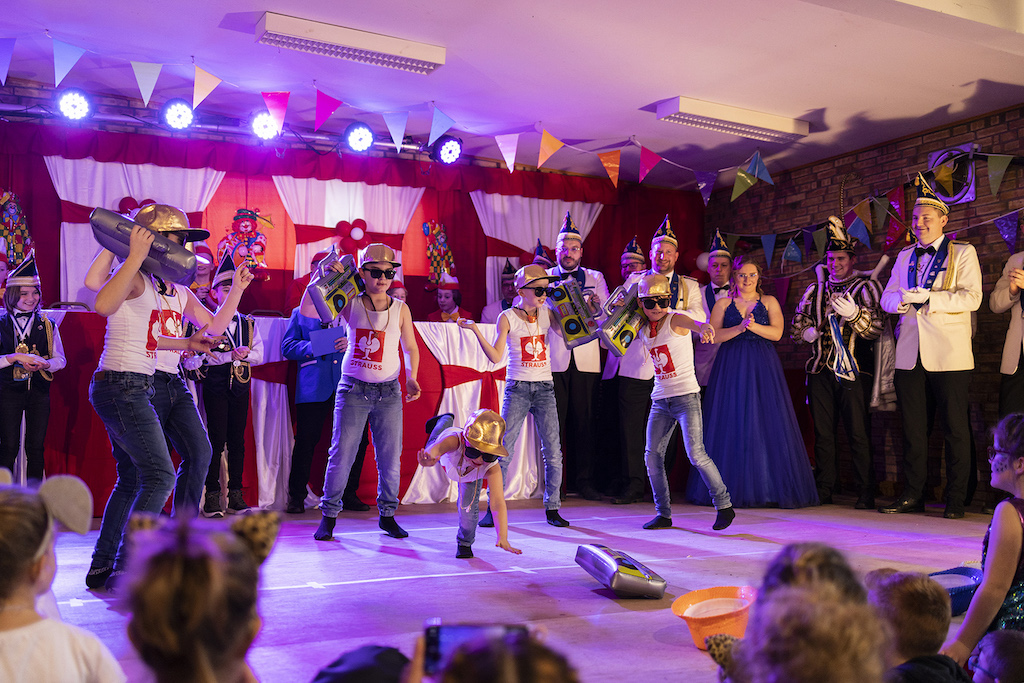 Am vergangenen Sonntag trafen sich Groß und Klein zur Kindersitzung in der festlich geschmückten Schützenhalle zu Höngen. Neben den arrivierten Karnevalsgesellschaften der Witsemän aus Tüddern und der Kleischötte aus Süsterseel, die jeweils mit ihrem Nachwuchs auftraten, durfte Kindersitzungspräsidentin Fenja Douven auch Gäste aus dem gesamten Selfkant begrüßen, z.B. die Tanzgarde aus Saeffelen. Es wurden atemberaubende Tänze gezeigt, Aaron Conen und Ida Douven brachten mit ihren Büttenreden die Halle zum beben und auch die kleinsten Jekken vom Familienzentrum St. Lambertus Höngen gaben sich die Ehre. Ein weiterer Höhepunkt bildeten die Sieningspänz Kids mit dem Eskimotanz. Natürlich waren auch die hiesigen Diamond-Tanzgruppen vertreten, die mit den Diamond Babes, Diamond Minis und Diamond Kids gleich drei Sitzungspunkte bildeten. Als das Ende der Sitzung erreicht war, verkündete Fenja Douven, dass sie das Amt als Kinderpräsidenten nach 5-järiger Amtszeit an ihre Schwester Ida Douven weitergeben werden. Es war der emotionale Abschluss einer großartigen Kindersitzung.