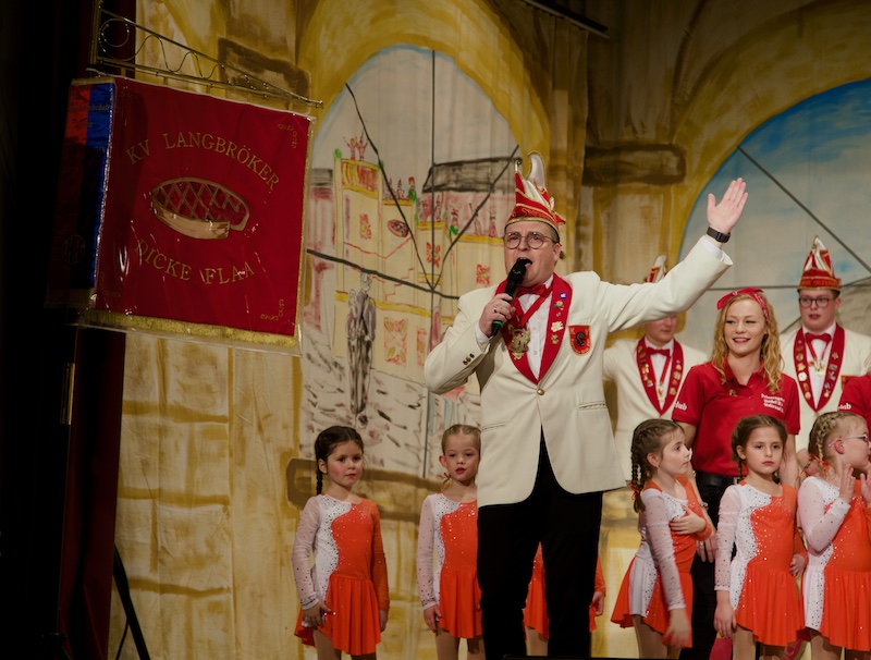 Die Langbröker Dicke Flaa feierte an diesem Wochenende das Sitzungswochenende der Session 2023/2024. Den Auftakt machte die Kappensitzung am Samstag, den 03.02.2024. Mit einem bunten Programm mit 18 Punkten und ausverkauften Tickets wurde dem feierfreudigen Publikum so einiges geboten. Nachdem der Elferrat auf die Bühne gezogen war und die beiden Sitzungspräsidenten nach einer kurzen Einleitung die Gäste begrüßt hatten, zog das Prinzenpaar auf die Bühne. Prinz Detlef II. und Prinzessin Waltraud II. betraten bei toller Stimmung die Bühne. Nachdem der Elferrat und das Prinzenpaar die Bühne betreten hatten, performte traditionell die Tanzgarde der Dicken Flaa den Auftakt. Danach verfolgte das aufmerksame Publikum eine ausgezeichnet vorgetragene Büttenrede von Jens Fleischer, der als „Jong van et Dörp“ nicht zum ersten Mal auf der Bühne stand. Im Anschluss an den großartigen Tanz des Solotanzmariechens Nele Keulen wurden die Gastvereine und Ehrengäste auf die Bühne geholt. Neben dem Wooder Wend, den Berder Perringen und den Scherwauerer Heggeströpern brachten die Witsemänn aus Tüddern ihr Prinzenpaar, Prinz Julian I. und Prinzessin Lena, mit. Nach einem herausragenden Showtanz der Gruppe Taktlos, einer lustigen Büttenrede von Gerd Theves und einer Darbietung der „Billy Boys“ trat eine neu formierte Showtanzgruppe bestehend aus vier jungen Mädels auf. Ein Sketch der „Durex Men“ folgte. Die Pause leiteten die „Dorfspatzen“ ein. Nach der Pause legten die „Zugeflogenen“ einen lustigen Auftritt hin, ehe die „Teufelskerle“ die Stimmung mit ihrem Tanz zum Kochen brachten. Sowohl die Frauen vom „LaHaTaBa“ als auch im Anschluss daran die „Langbröker Rockemariechen“ begeisterten mit einer Tanzeinlage. Im vorletzten Punkt vor dem Finale trat abermals die Band „Hat Wat“ auf, die mit bekannten Songs des Kölner Karneval die Halle rockten. Den letzten Auftritt des Abends hatten die „Fire Flames“ mit ihrem Showtanz zum Thema Goldgräber. Daraufhin wurden zum Finale nochmals alle Akteure auf die Bühne gebeten, bevor die Gäste den Abend langsam ausklingen ließen.