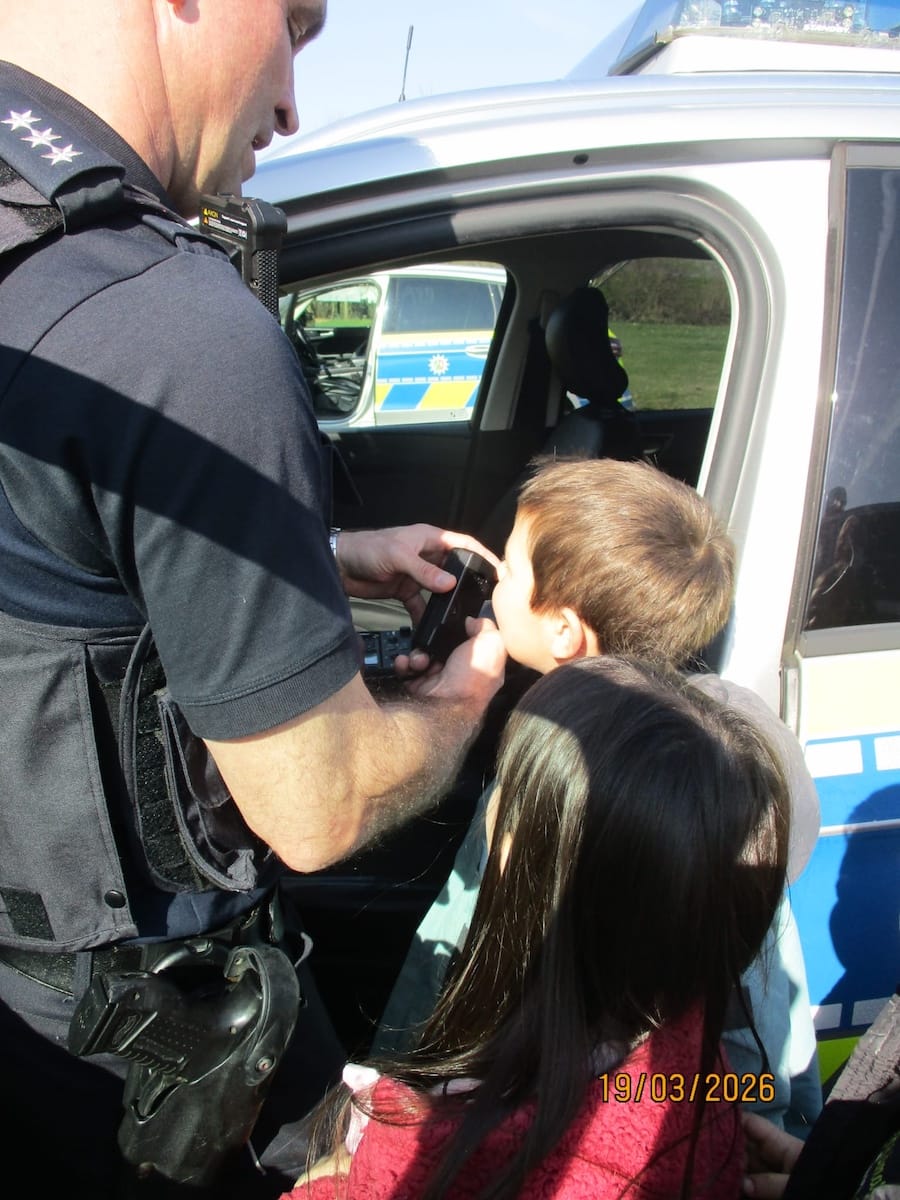 Das Bestaunen der beiden Streifenwagen, das Anschalten des Blaulichts und das Probesitzen im Polizeiauto waren nur einige Highlights dieses Vormittages.