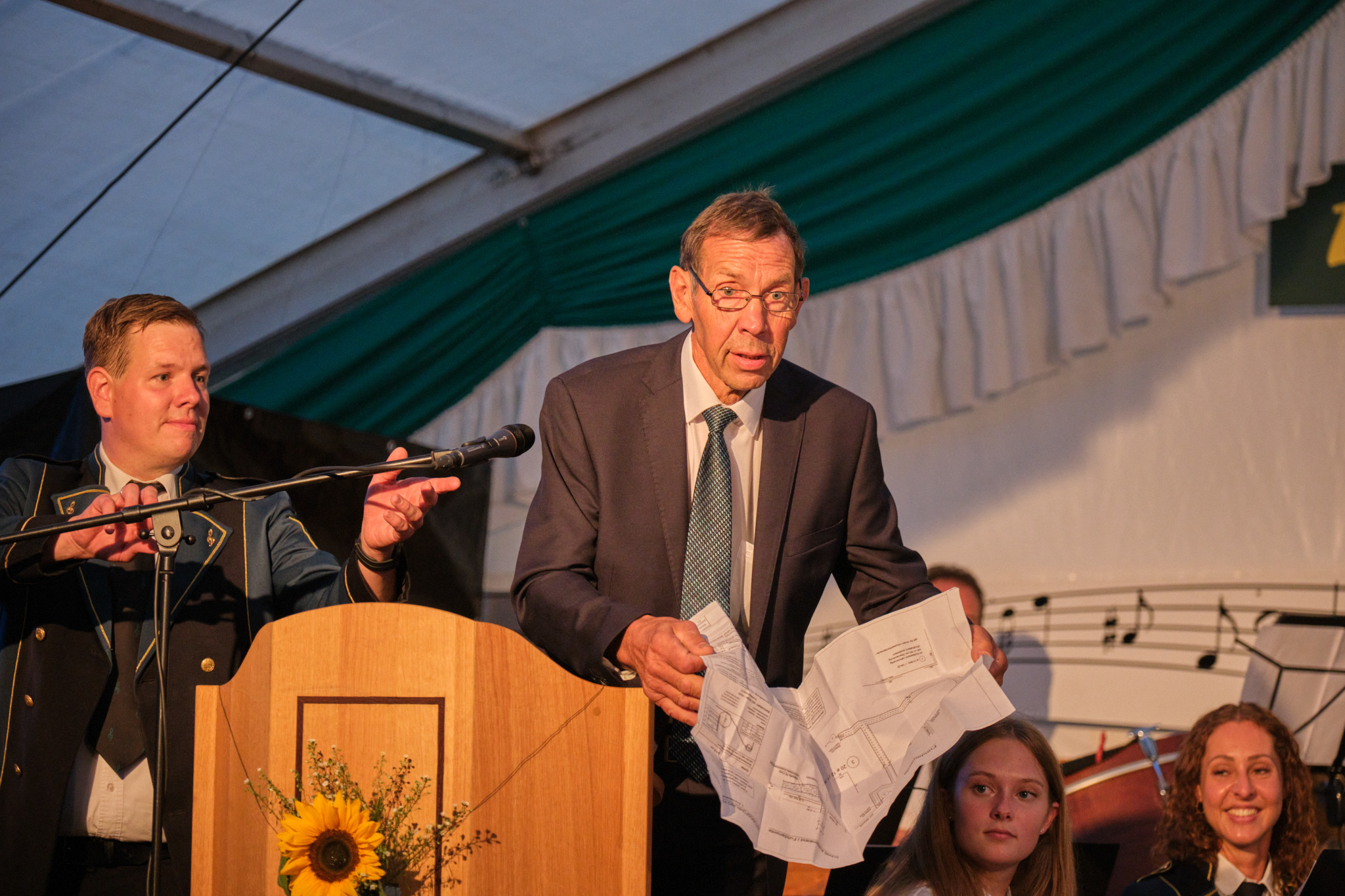 Schirmherr Lorenz Houben hatte zu Beginn seiner Rede eine tolle Idee bzgl. des Redemanuskriptes. Er ist seit über 50 Jahre im Verein und immer noch im Einsatz.