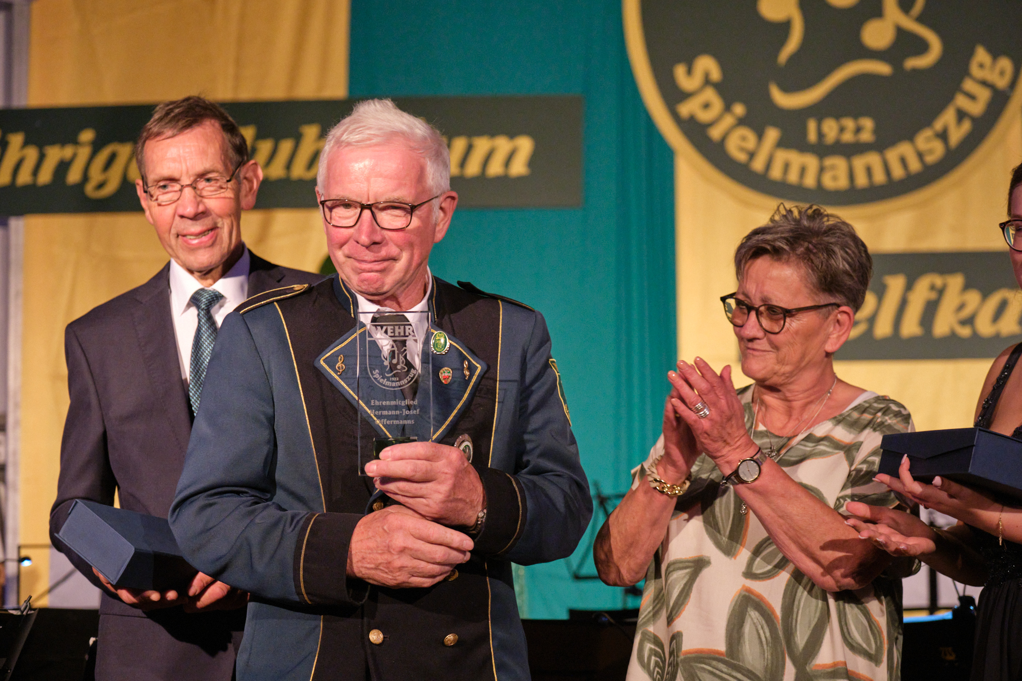 Ehrungen veranstaltet der Spielmannszug nicht alle Jahre, daher wurden fast alle Mitglieder für ihre langjährige Tätigkeit und Mitgliedschaft ausgezeichnet. Vorgenommen wurden die Ehrungen im Block von der Kaiserin Bonnie Haken und der Mutter des Tambourmajors und ehemalige Kaiserin Ellen Stellten.