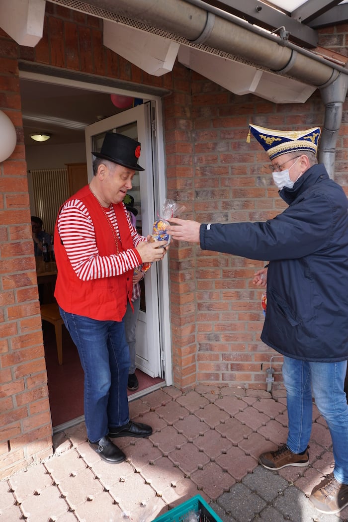 Dort überreichen dann traditionell das Prinzenpaar und der Schülerprinz Tüten mit Kamelle an die Menschen mit Behinderung. Hubert Jessen, Präsident der Witsemänn, sagte: „Aktuell sind leider noch keine Karnevalsveranstaltungen möglich, aber wir wollen den Bewohnern eine kleine Freude machen. Wir alle hoffen, dass wir im nächsten Jahr wieder mit euch zusammen feiern können.“ Georg Meiers, Vorsitzender des Fördervereins, bedankte sich bei Hubert Jessen für dieses schöne Zeichen der Verbundenheit und verabschiedete die Karnevalisten mit einem dreifach schallenden Alaaf auf die Witsemänn, die Wohnstätte und den Förderverein.