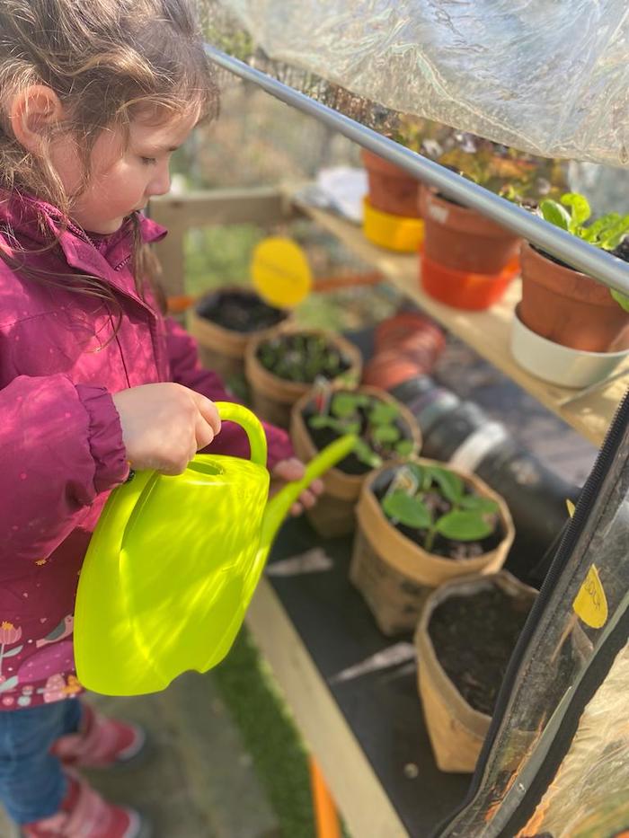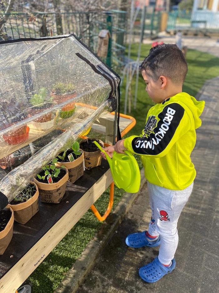 Das schöne Wetter der letzten Wochen wurde nun von den Kindern genutzt, um im neuangeschafften Minitreibhaus mehrere Gemüsepflanzen zu züchten, welche hoffentlich bald von den Kindern ins Hochbeet gepflanzt werden