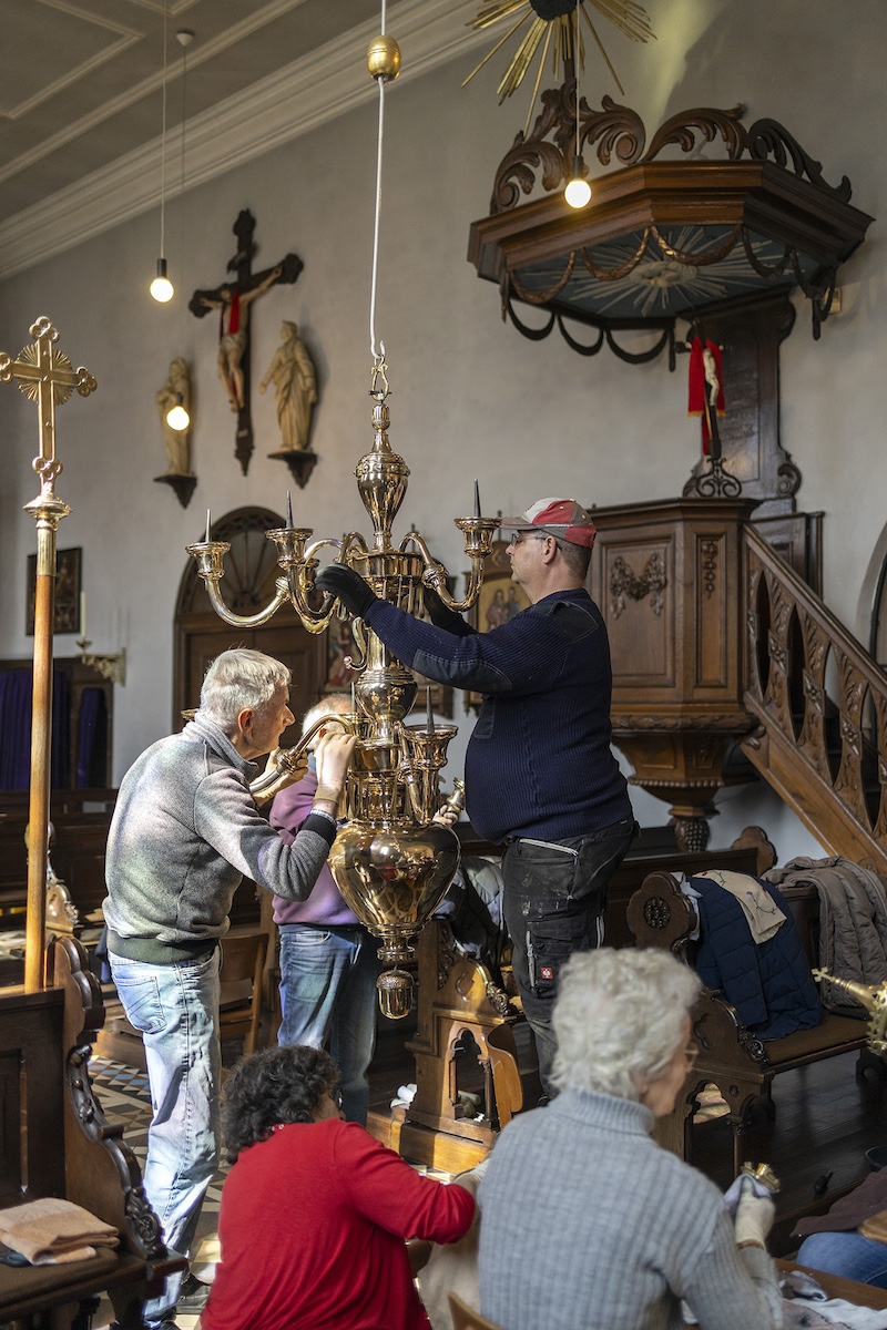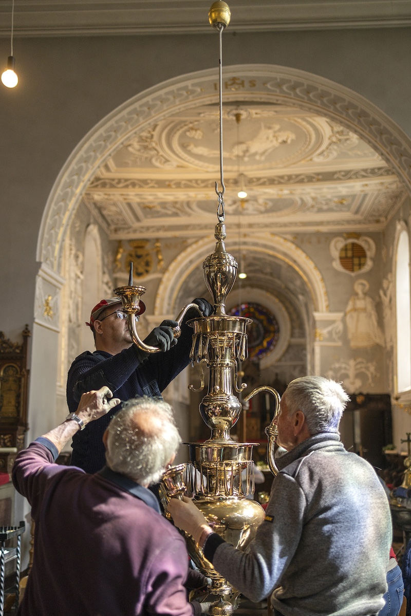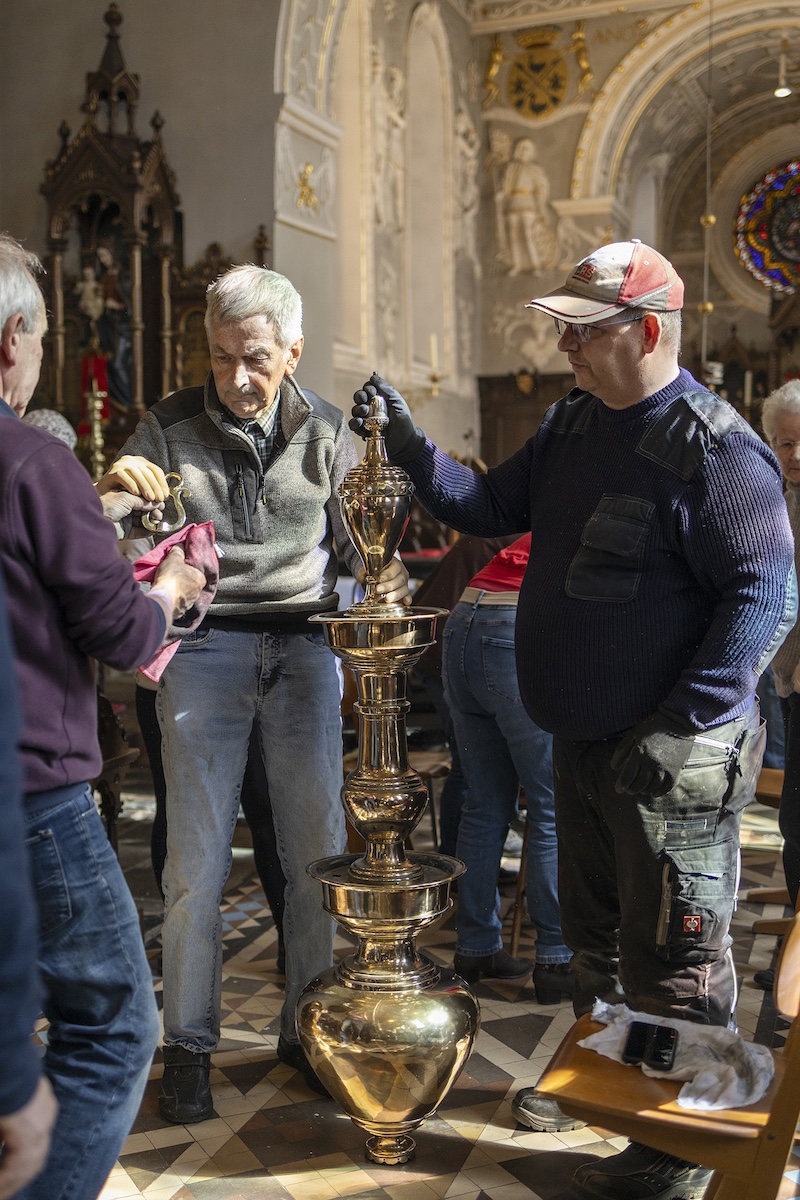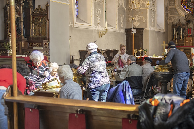 Auch dieses Jahr beteiligten sich engagierte Millener Bürger um das Kupfer in der Kirche wieder im neuen Glanze erstrahlen zu lassen. Es ist schon eine Tradition geworden das jedes Jahr vor Ostern das Kupfer in der Kirche geputzt wird, Kronleuchter, Kerzenständer, Weihrauchgefäß und co. werden auf Hochglanz poliert. Es ist nicht selbstverständlich das dies in der heutigen Zeit noch gemacht wird. Um so erfreulicher das dies in Millen noch so gut klappt. Nach getaner Arbeit wurde noch zusammen gesellig gegessen und die selbstgemachte Suppe von Bertha Willms und Stephie Hacken verköstigt. Nochmals ein ganz großes Dankeschön an alle freiwilligen Helfer.