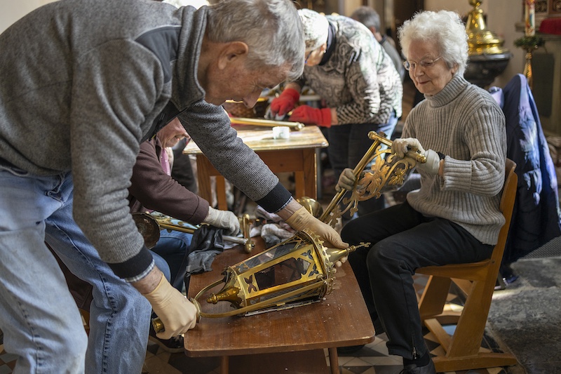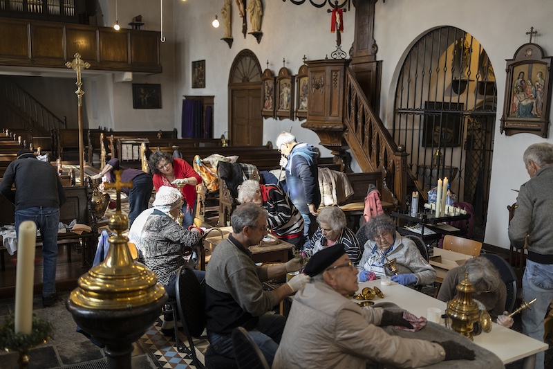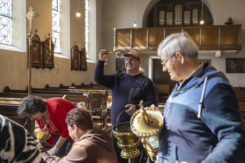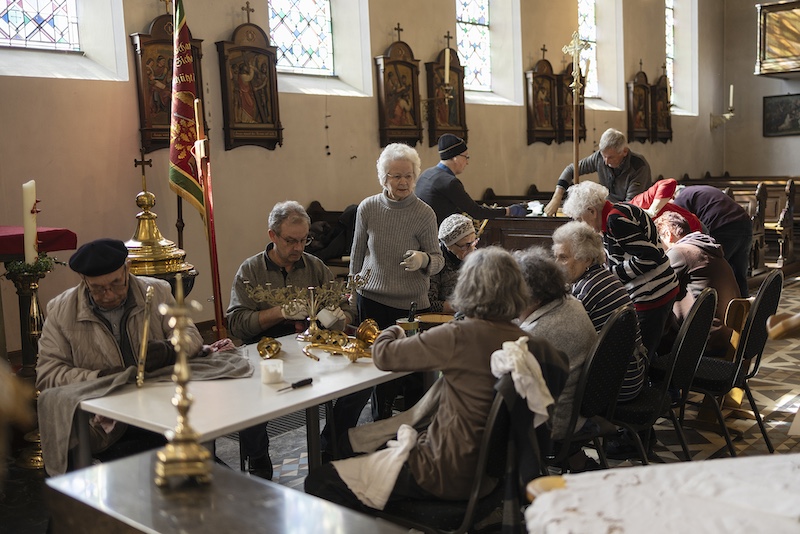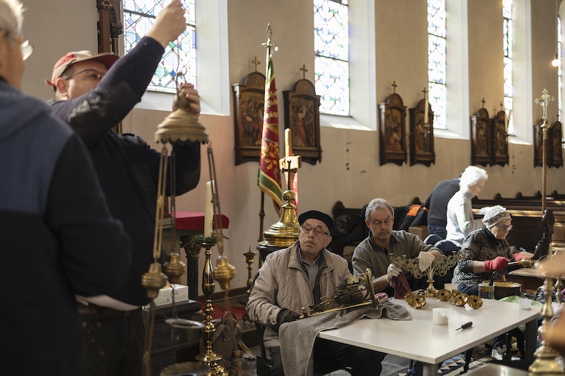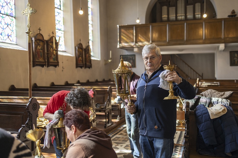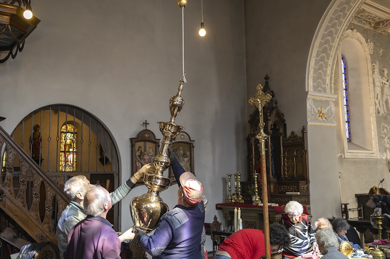 Auch dieses Jahr beteiligten sich engagierte Millener Bürger um das Kupfer in der Kirche wieder im neuen Glanze erstrahlen zu lassen. Es ist schon eine Tradition geworden das jedes Jahr vor Ostern das Kupfer in der Kirche geputzt wird, Kronleuchter, Kerzenständer, Weihrauchgefäß und co. werden auf Hochglanz poliert. Es ist nicht selbstverständlich das dies in der heutigen Zeit noch gemacht wird. Um so erfreulicher das dies in Millen noch so gut klappt. Nach getaner Arbeit wurde noch zusammen gesellig gegessen und die selbstgemachte Suppe von Bertha Willms und Stephie Hacken verköstigt. Nochmals ein ganz großes Dankeschön an alle freiwilligen Helfer.