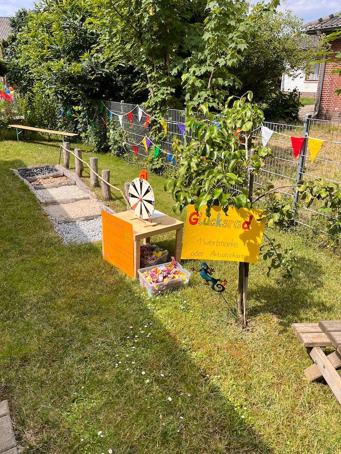 Neben verschiedenen Aufführungen seitens der Kindergartenkinder, die mit der Familie Langrin mit viel Liebe zum Detail einstudiert wurden, fand im und um den Kindergarten herum ein buntes Rahmenprogramm statt. In Ihrer Begrüßungsrede bedankte sich Kindergartenleiterin Stefanie Herfs und blickte noch einmal auf die vergangenen Kindergartenjahre zurück mit den Worten "Viele kleine Leute an vielen kleinen Orten, die viele kleine Dinge tun, können das Gesicht dieser Welt verändern. Unser Kindergarten ist in den letzten Jahren viele kleine, wie große Schritte gegangen und hat das Gesicht unserer kleinen Welt, nämlich das unseres Kindergartens verändert "