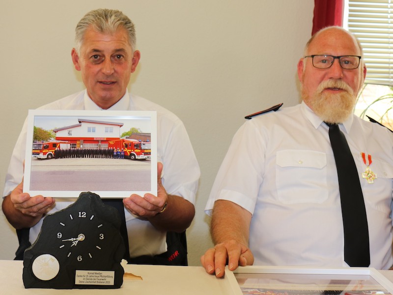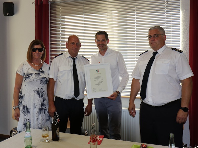 Feuerwehr ist ein sehr abwechslungsreiches "Hobby" und so ist es nicht verwunderlich, dass die Feuerwehrleute in der Regel sehr lange ihren Dienst verrichten. Bei der Löscheinheit Breberen konnten nun gleich vier Jubilare geehrt werden, die seit mehr als 35 Jahren Tag und Nacht für dieses Ehrenamt bereit stehen. Um dies gebührend zu feiern, wurden die Jubilare und ihre Partnerinnen von Bürgermeister Guido Willems zu einer kleinen Feierstunde in das Feuerwehrgerätehaus Breberen eingeladen. Dieser Ladung waren ebenso die Leitung der Feuerwehr Gangelt, Günter Paulzen und Heiko Dreßen, sowie der Fachbereichsleiter Ordnung und Soziales der Gemeinde Gangelt, Helmut Görtz, gerne gefolgt. In seiner Laudatio ließ Bürgermeister Willems den Werdegang der vier Jubilare Revue passieren. Am 16. April 1987 traten gleich drei der vier Jubilare gemeinsam der Feuerwehr in Breberen bei und absolvierten hier ihre Grundausbildung. Heinz-Theo Vergossen bildete sich auch nach der Grundausbildung weiter fort und wurde im März 1998 zum Zugführer des Lösch- und Hilfeleistungszuges 3 der Gemeinde Gangelt ernannt. Dieser bestand und besteht auch heute noch aus den Löscheinheiten Breberen, Hastenrath und Langbroich-Harzelt. Im November 2007 übernahm Vergossen zudem das Amt des Breberner Löscheinheitsführer von Franz-Josef Dreßen. Bis August 2011 bekleidete Heinz-Theo Vergossen diese beiden Ämter um sie dann in jüngere Hände zu übergeben. Konrad Meeßen und Paul-Günter Donners engagieren sich ebenso seit mehr als dreißig Jahren in der Feuerwehr und das, wie alle anderen Feuerwehrleute in der Gemeinde Gangelt auch, ehrenamtlich neben dem eigentlichen Beruf. Dabei kommen den Einsatzkräften der Feuerwehr auch schon einmal die beruflichen Fähigkeiten zugute. Koni Meeßen ist als Zimmermann natürlich schwindelfrei und lässt seiner Kreativität bei den Abrahams-Puppen zu den 50. Geburtstagen seiner Kameraden freien lauf. Wegen seiner professionellen und kameradschaftlichen Mentalität bekleidet Konrad Meeßen seit 2019 das Amt der Vertrauensperson nach BHKG der Löscheinheit Breberen. Rund ein Jahr nach den drei Jubilaren trat am 18. März 1983 Jürgen Vergossen der Feuerwehr in Breberen bei. Sein Engagement bei der Feuerwehr war quasi schon vorbestimmt, schließlich diente die Scheune der Familie Vergossen eine Zeit lang als provisorisches Gerätehaus der Löscheinheit Breberen. Jürgen Vergossen ist in der Löscheinheit als Organisationstalent bekannt. Mit seinem Containerdienst und seinem Talent große Fahrzeuge zu bewegen, ist er nicht nur eine Stütze der Löscheinheit, er war auch eine große Hilfe nach der Flut im Ahrtal, seinem liebsten Urlaubsziel. Als Zeichen der Anerkennung ihrer 35-jährigen Verdienste überreichte Bürgermeister Guido Willems den Jubilaren Hauptbrandmeister Heinz-Theo Vergossen, Unterbrandmeister Konrad Meeßen, Hauptfeuerwehrmann Paul-Günter Donners und Hauptfeuerwehrmann Jürgen Vergossen das von Innenminister Herbert Reul verliehene Feuerwehrehrenzeichen des Landes Nordrhein-Westfalen in Gold. Doch auch Günter Paulzen hatte als Leiter der Feuerwehr noch eine Ehrung im Gepäck. Seit mehr als 50 Jahren engagiert sich Peter Simons in der Feuerwehr Gangelt. Im Alter von 25 Jahren trat er der Feuerwehr bei und absolvierte kurz nach der Grundausbildung im Jahr 1979 den Atemschutzgeräteträgerlehrgang. Seine Tätigkeit im Rettungsdienst war auch für so manchen Einsatz sehr hilfreich. Für sein außergewöhnliches Engagement wurde Simons bereits 2012 mit der Ehrennadel des Kreisfeuerwehrverbandes in Silber und 2016 mit der Ehrennadel der Feuerwehr Gangelt in Gold ausgezeichnet. Für seine 50-jährige Mitgliedschaft wurde Oberfeuerwehrmann Peter Simons mit der Ehrennadel der Verband der Feuerwehren NRW (VdF NRW) der Sonderstufe 50 ausgezeichnet.