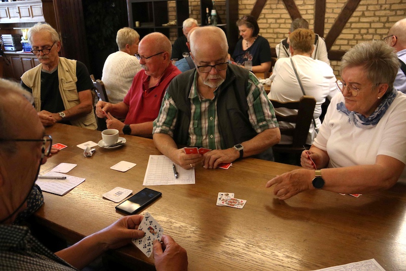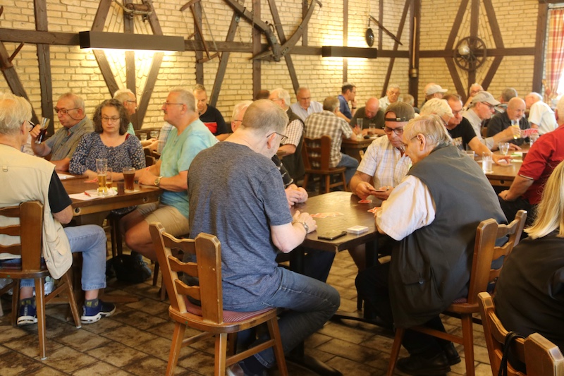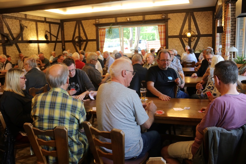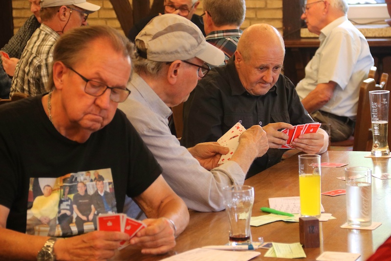 Die Gangelter Skat-Meisterschaft im Hause Hamacher sah eine Rekordbeteiligung mit 92 Teilnehmern, 12 weibliche Skatspielerinnen hofften auf Kartenglück. Veranstalter „Berder Jonge“ strahlte über diesen Rekord. Fast fünf Stundenlang wurde gespielt. Es gibt zahlreiche verschiedene Strategien, für viele ist das Skatspiel das schönste Kartenspiel und jeweils eine echte Herausforderung. An so manchen Tischen rauchten im wahrsten Sinne die Köpfe und die Skatspieler hofften auf Kartenglück. Die Auswertung sah Michael Nelissen ganz vorne, aus den Händen des Vorsitzenden Detlef Kehmer erhielt Nelissen den Siegerpokal und erhielt Glückwünsche zur Gangelter Skat-Meisterschaft. Platz zwei ging an Ralf Holländer, Dritte wurde Jürgen Steiner. Im Damenwettbewerb holte sich Brigitte Krah den Titel.