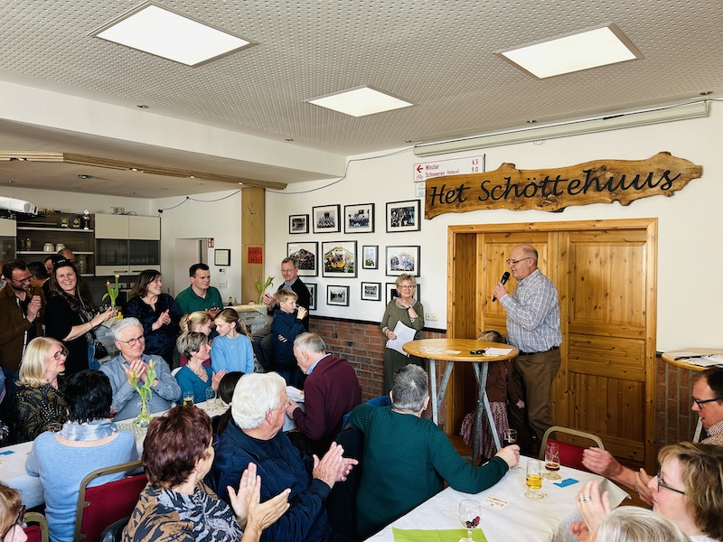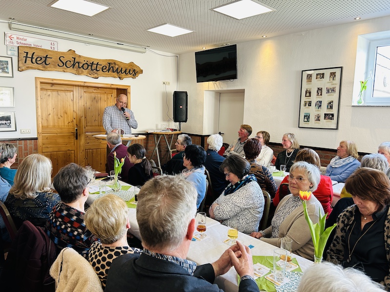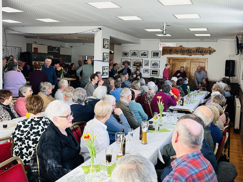 Die St. Martini Schützenbruderschaft Isenbruch hatte zum Mundart-Nachmittag auf „Platt“ eingeladen. Das Schöttehuus war bis auf den letzten Platz besetzt und es mussten noch weitere Stehtische aufgestellt werden. Moderator Martin Busch begrüßte die Anwesenden und bedankte sich, dass so viele der Einladung gefolgt waren. „Das hatten wir nicht erwartet“. Den Auftakt der Vortragsreihe machten unsere Dorfkinder Leona Perbaums, Lotte Perbaums und Ben van Horen mit Isenbrucher Sprüche und Reime, welche mit viel Applaus belohnt wurden. Im Anschluss daran trug Maria Küsters in gekonnter Weise ihren Text „Kapellen-Putzaktion“ vor und sorgte für weitere Lacher. Vor der Pause dann, in der es echte frische Limburgse Vla und Kaffee gab, trug Josef Perbaums eine Anekdote zum Schmuggeln im einst westlichsten Haus der Bundesrepublik vor.