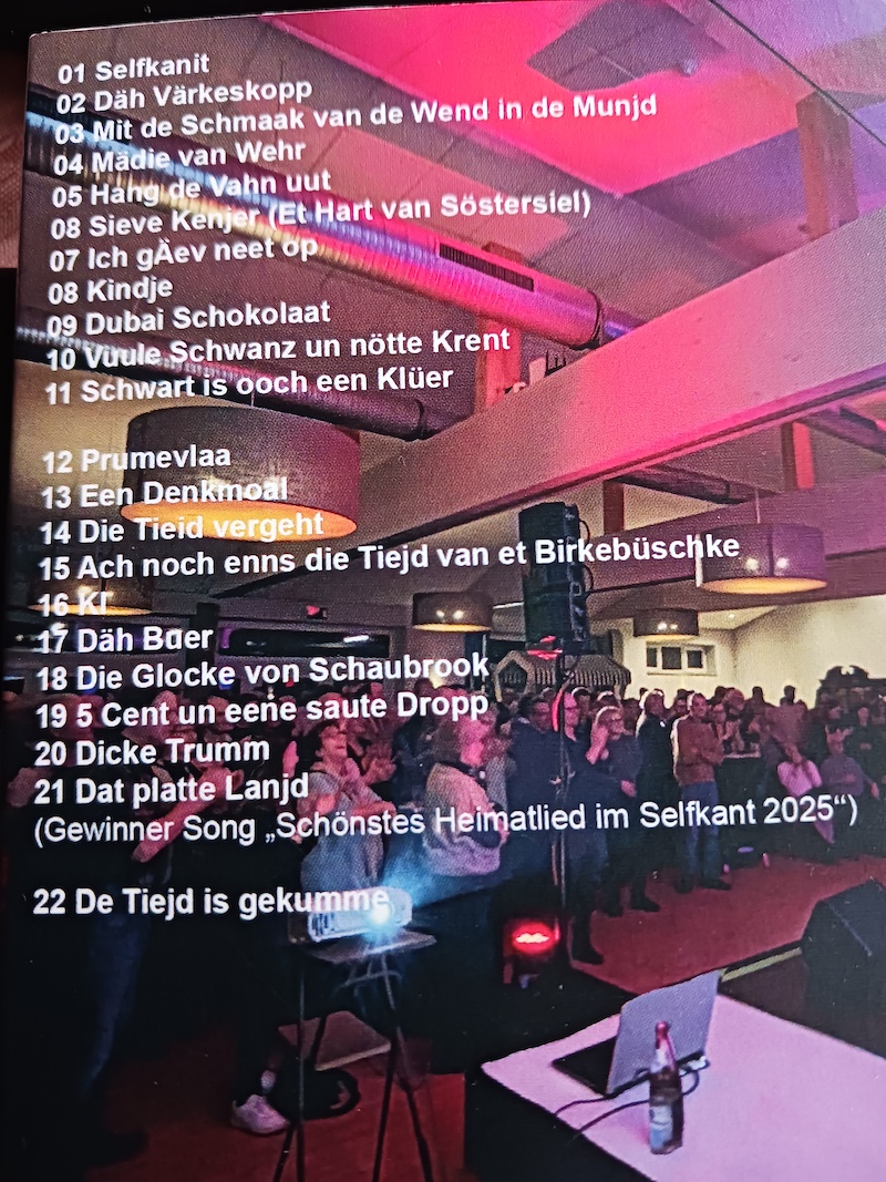 Der Selfkant steht vor einzigartigen Musiktagen. Funny van Dannen & Grooovemen präsentierten in der Westzipfelhalle fast zwei Stunden lang ausschließlich Lieder „op platt“. Die Veranstaltung am Freitag, 21. November ist „ausverkauft“, für den Samstag, 22. November sind noch Restkarten an der Abendkasse (nur Samstag geöffnet) erhältlich - (Infos oder Vorbestellungen unter Mail heinzquix@gmx.de). An beiden Tagen ist Einlas ab 19:00, Beginn 20:00 - Sitzplätze stehen zur Verfügung. Ferner wird am Freitag sowie Samstag eine erstellte CD (22 Lieder) vom Live-Konzert in der Waldschänke (Februar) zum Sonderpreis von 15€ angeboten, eingebunden ein Liedbuch (Übersetzt) mit allen Liedern - vielleicht das Weihnachtsgeschenk nicht nur für Heimatfreunde und sowie Mundartsprache.