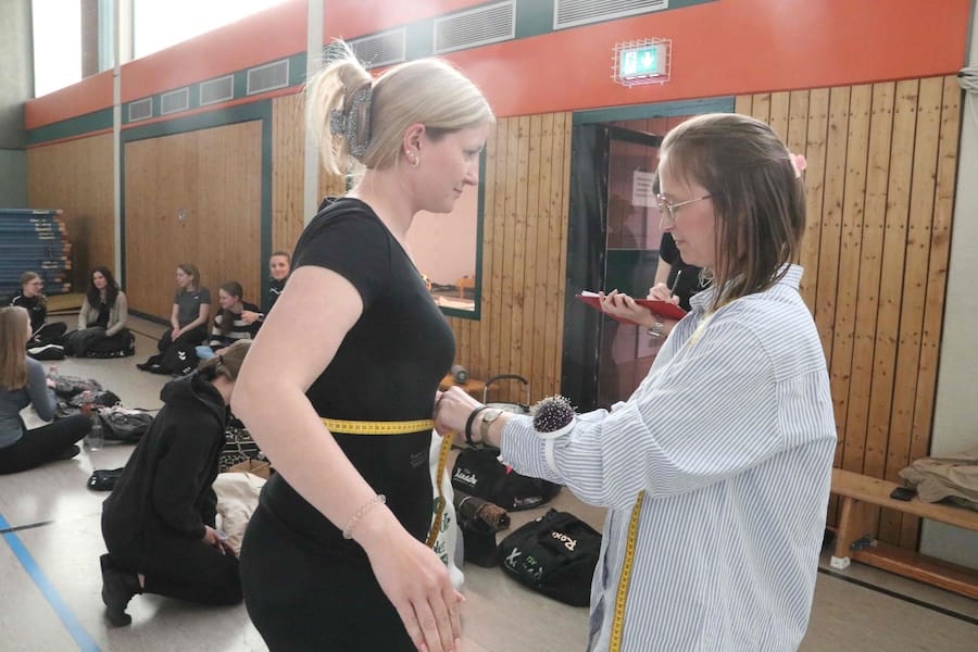 Die Vorbereitungen für das Selfkantmusical 2.0 Oh wie Heimat ist das Grenzland laufen auf Hochtouren. Die Showtanzgruppe Xanadu aus dem Selfkantland ist mitten drin im Programm. Die Truppe ist auf vielen Fronten im Musical aktiv wie gleich zum Auftakt sowie großes Finale, dazwischen beim Karneval- sowie Klumpenfestival. Regisseur Bas Stelten war vor Tagen in der Turnhalle Tüddern bei den Proben zu Gast, besprach den Programmablauf mit Nadine Niessen. Besprochen auch das Outfit der insgesamt 21 Mädels, die Showtanzgruppe war bereits beim ersten Selfkantmusikcal „…einmal Niederlande und zurück“ in Saeffelen eine Augenweide, im Sportpark Höngen dürften die charmanten Mädels nicht nur durch glitzernden Pailletten-Out-Fit alle Augen auf sich ziehen. Nadine Niessen und ihre Xanadu-Mädels überlassen nichts dem Zufall überlassen. Die Mädels wurden im Grunde allesamt von Kopf bis Fuß vermessen damit die Kostüme passen.
