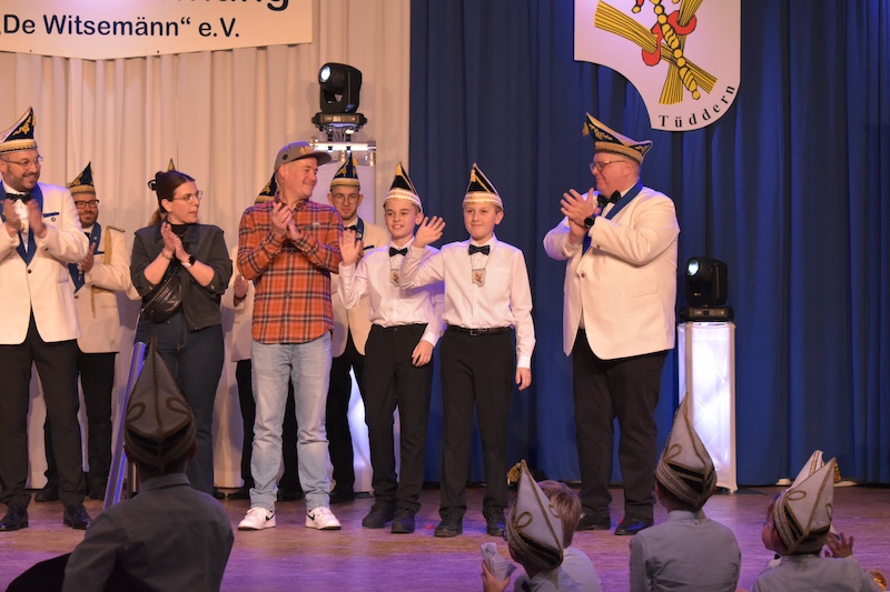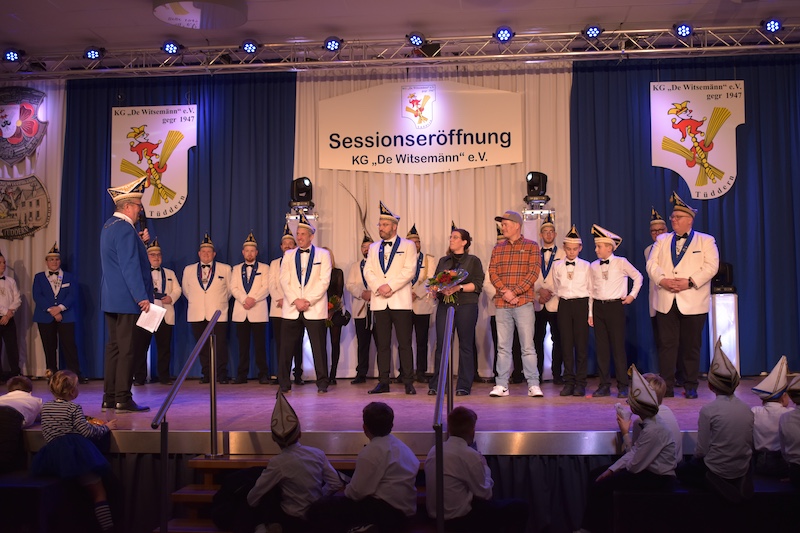 Unter großem Jubel wurden Prinz Jörg I. und Prinzessin Jeanette sowie Kinderprinz Mats I. (Familie Houben) die von ihren Adjutanten Michael Schmitz, Markus Grauboom und Michael Weinhold sowie Kinderadjutant Niklas begleitet werden, vorgestellt. Die Tüdderner Narrenschar ließ es sich dann natürlich nicht nehmen, den neuen Tollitäten zu gratulieren. DJ Leon und Gianluca „Lambo“ Franken sorgten musikalisch für den ersten Stimmungstest und rundeten eine gelungene Sessionseröffnung ab.