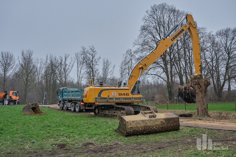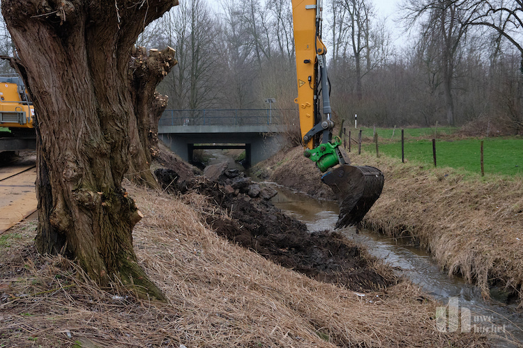 Anfang Januar wurden zunächst Gehölze, die beim Herausbaggern der Betonplatten im Weg stehen, beseitigt. Die Kopfweiden im Bereich oberhalb und unterhalb der Brücke am Bauhof wurden geschneitelt.