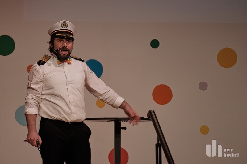 Gregor Küsters aus Höngen ging als Kapitän auf die Bühne und gab Humorvolles aus dem Leben seiner Crew und der Fahrt während der Reise um die Selfkantinsel preis.