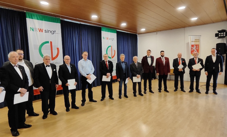 Drei Mitgliedschöre des Sängerkreises erhielten vom Deutschen Chorverband eine Ehrenurkunde: Sein 100 jähriges Vereinsjubiläum feiert der Gesangverein „Frohsinn“ Beeck e.V. Ihr 175 Bestehen begehen der Übacher Gesangverein 1848 und der