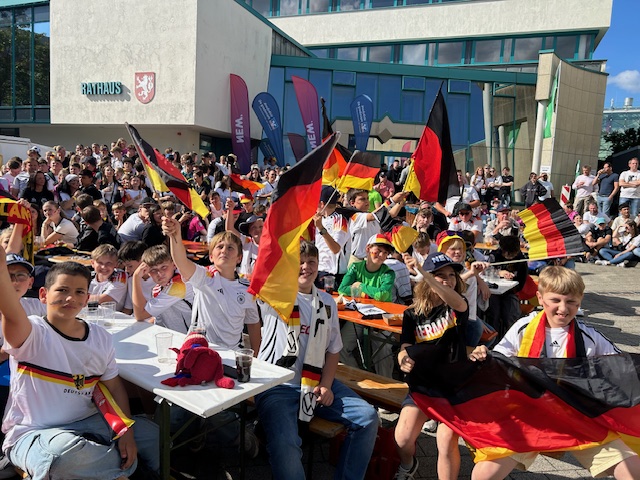 Auf Einladung der NEW AG und der Volksbank Heinsberg eG konnten unsere 2012er Jungs das EM-Spiel Deutschland gegen Ungarn( 2-0) auf der Fanmeile am Heinsberger Rathaus in erster Reihe verfolgen.