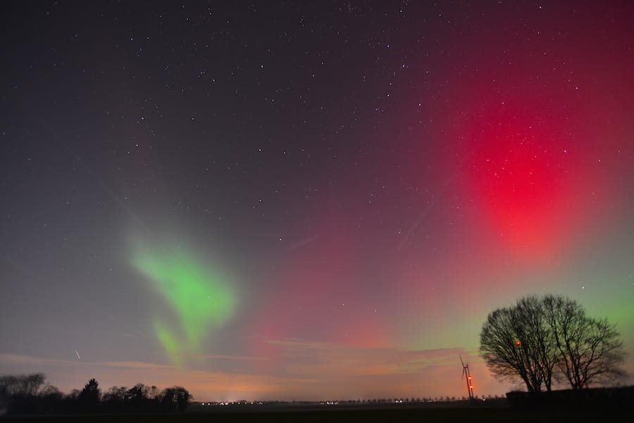 Josef Ars gelangen in der Nacht fast sensationelle Fotos über dem Selfkant. Ein geomagnetischer Sonnensturm sorgte für ein buntes Farbenspiel am Nachthimmel.
