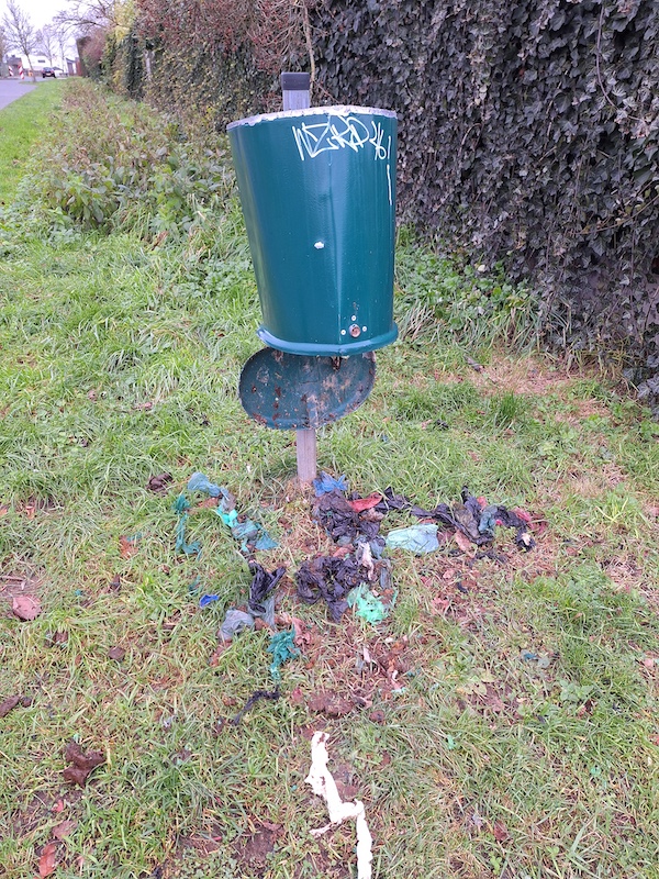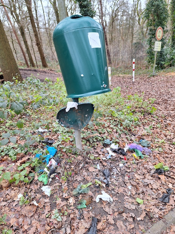 Nachdem man als Hundehalter in Tüddern schon wochenlang vor Silvester alle Hände voll damit zu tun hat,den Hund bei Böllerschlägen zu beruhigen,boten sich dann am Neujahrstag diese Bilder. Zwei Müllbehälter wurden mutwillig zerstört.In der Vennstraße wurde zum Böllermüll auch noch kurzerhand der Küchenabfall entsorgt.Am Silvesterabend herrschte ab 17.30 Kriegszustand an der Oligstraße Richtung Niederlande. Die Fenster in unseren Häusern vibrierten vor jeder Explosion. Wie fühlen sich die Menschen, die vor dem Krieg flüchten, um hier in Frieden zu leben? Ich jedenfalls finde diese Umstände unmöglich. Wie lange muß man sich sowas eigentlich noch gefallen lassen?