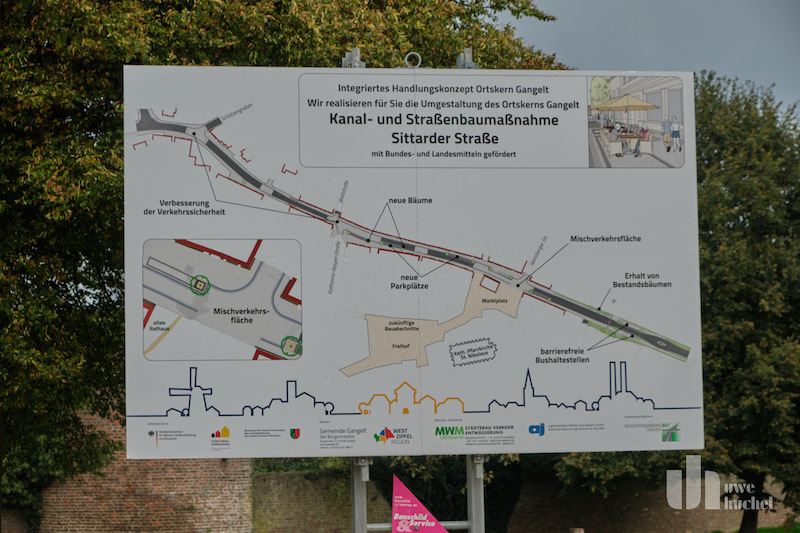 Die Planungsgruppe hatte für die Sittarder Strasse zwei Konzepte entwickelt. Variante 1 beinhaltete den Umbau der Sittarder Straße zu einer Einbahnstraße in Ost- West-Richtung. Gangelt entschied sich für Variante 2 - den Zweirichtungsverkehr mit geschwindigkeitsreduzierenden Elementen. Die Geschwindigkeit der Fahrzeuge wird auf 20 km/h begrenzt. Die Umgestaltung ist auf Barrierefreiheit, auf Flächen für saisonale Außengastronomie und eine Begrünung ausgelegt.